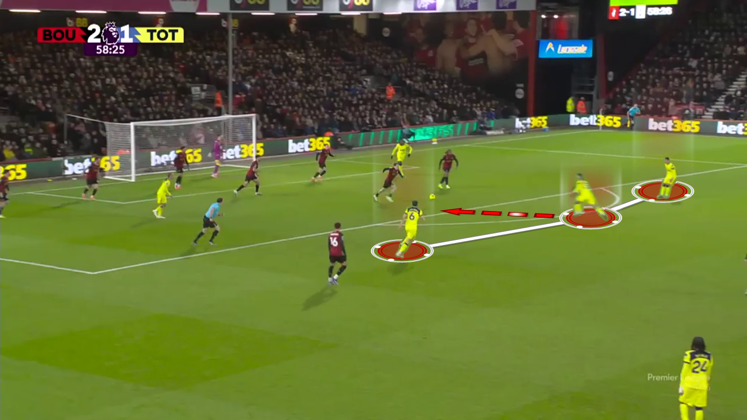 When they played over Spurs’ first line of pressure, Bournemouth also had a very vertical, direct approach.
