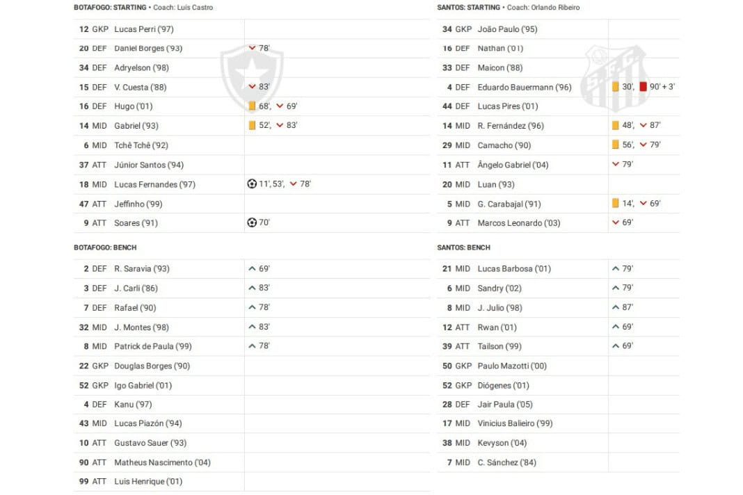 Thursday saw Botafogo vs Santos in Brazil Serie A.