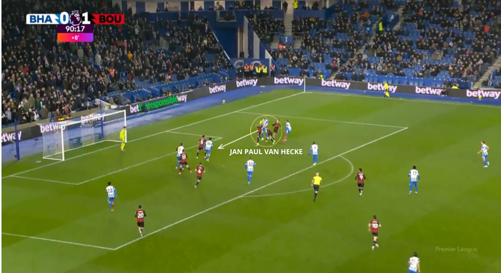 Bournemouth also suffered 55 ball losses in their defensive third, as Brighton’s aggressive counterpress produced 49 quick recoveries after a loss.