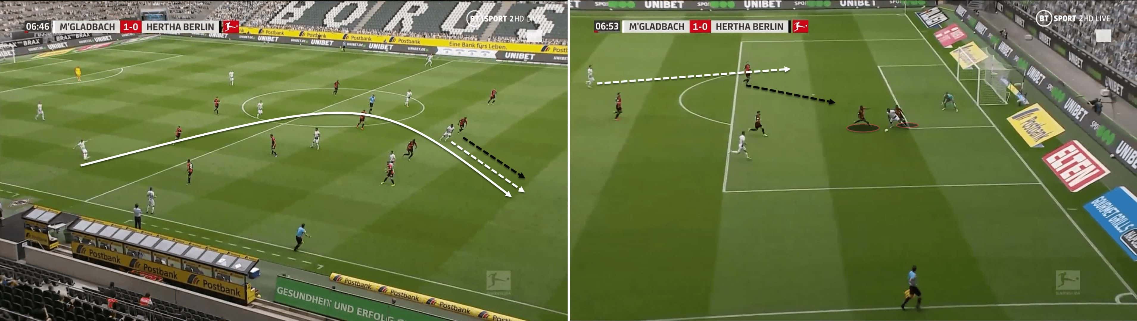 While it was a successful approach, Hertha found ways to take advantage of the defensive overloads that Gladbach used in the second half.