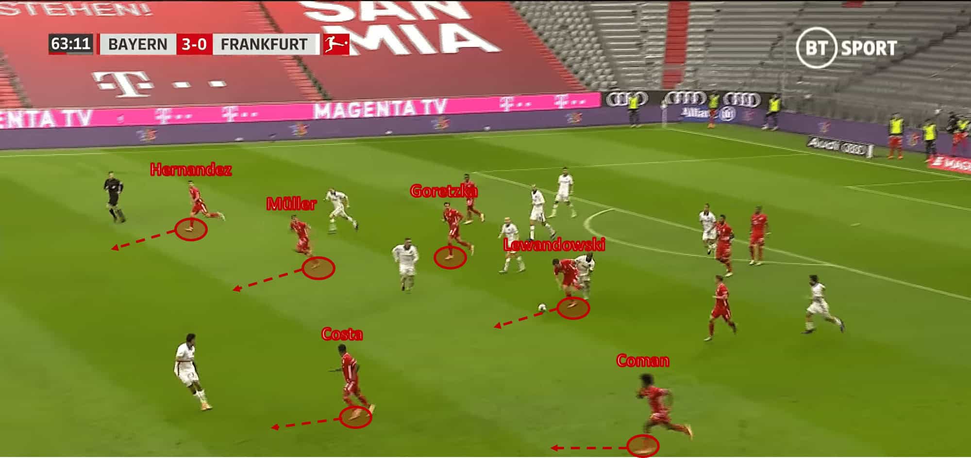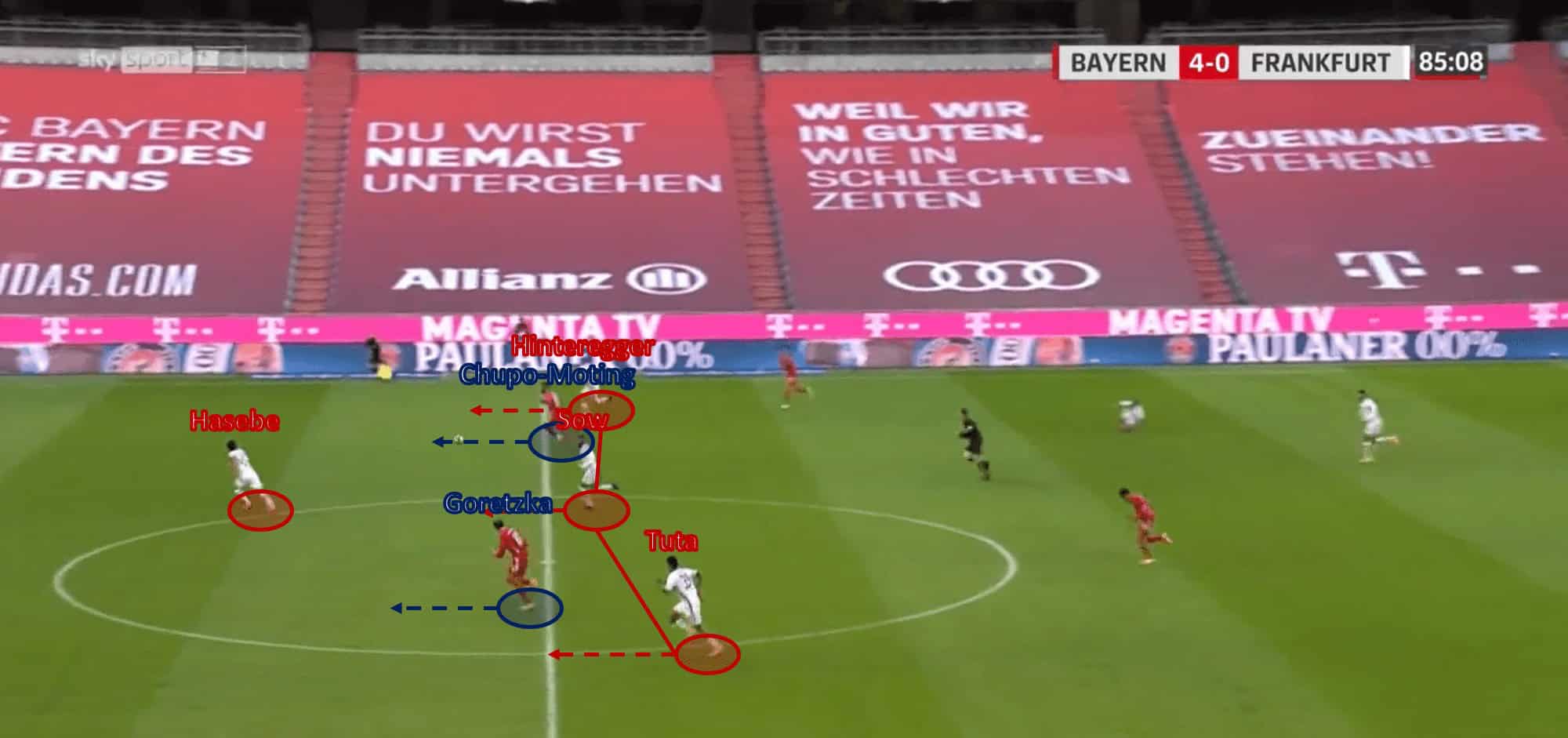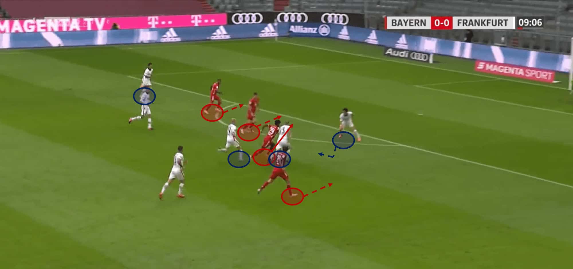 The Allianz Arena hosted an emphatic display by one side in the Bundesliga between Bayern Munich and Eintracht Frankfurt. This tactical analysis will break down the game that finished as a 5-0 victory to the home side.