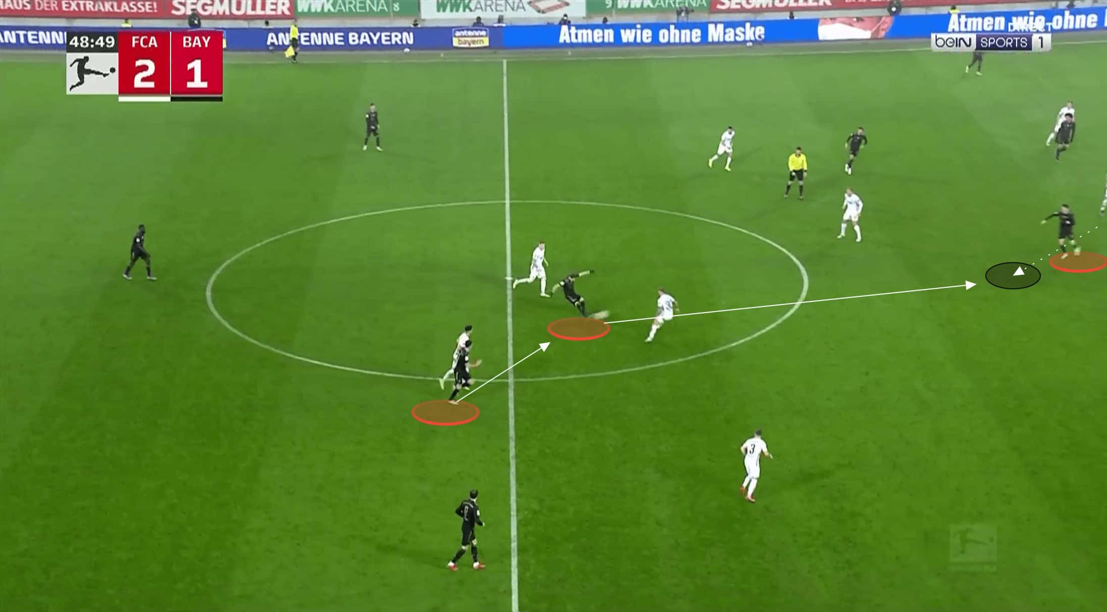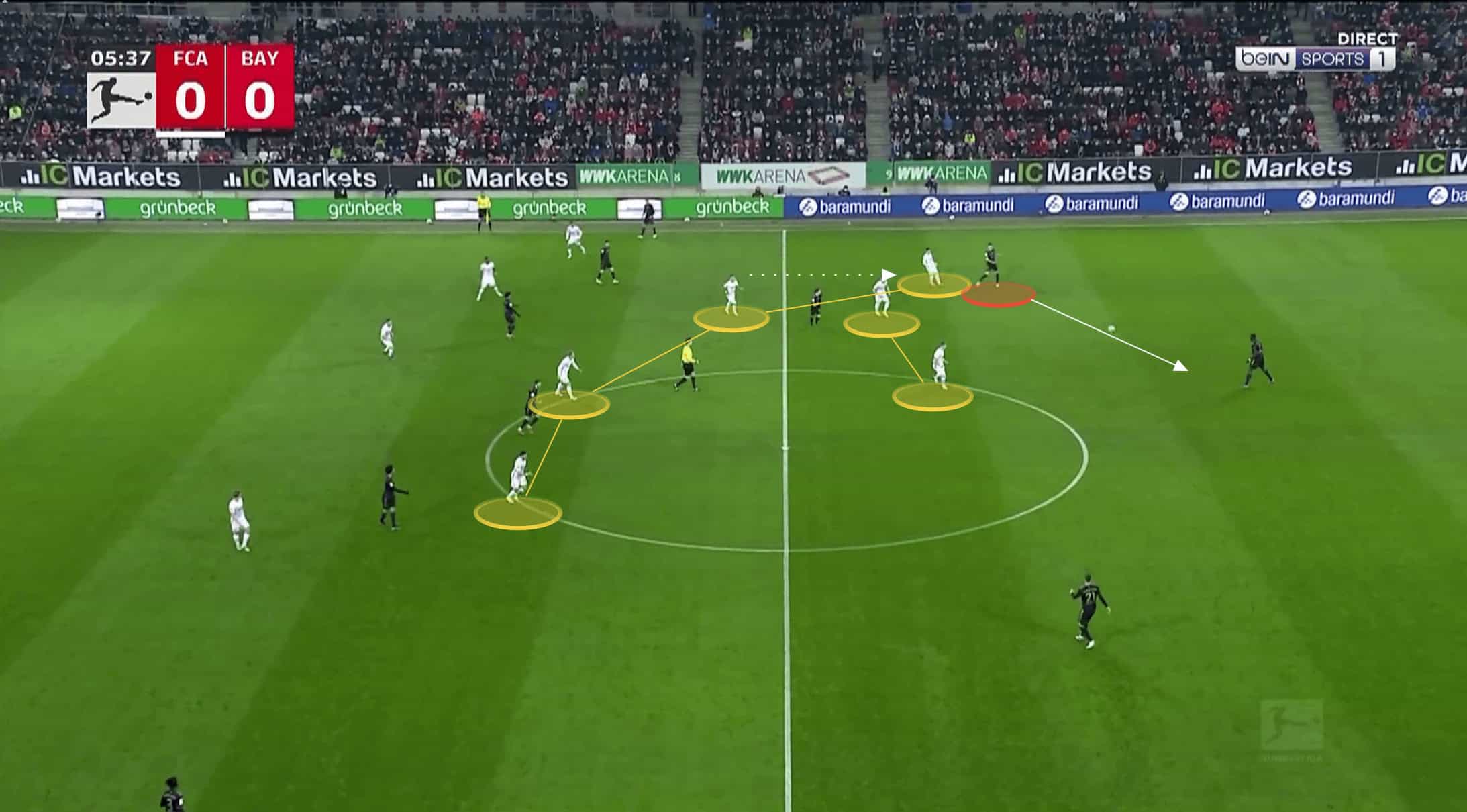 This led to an immediate regain of possession for Augsburg, with Zeqiri driving forward into the open space to begin the counter.