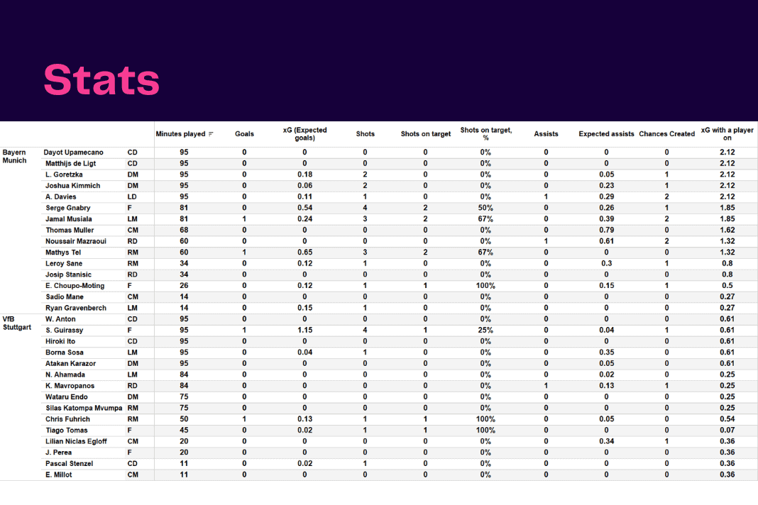 Bundesliga 2022/23: Bayern Munich vs Stuttgart – data viz, stats and insights