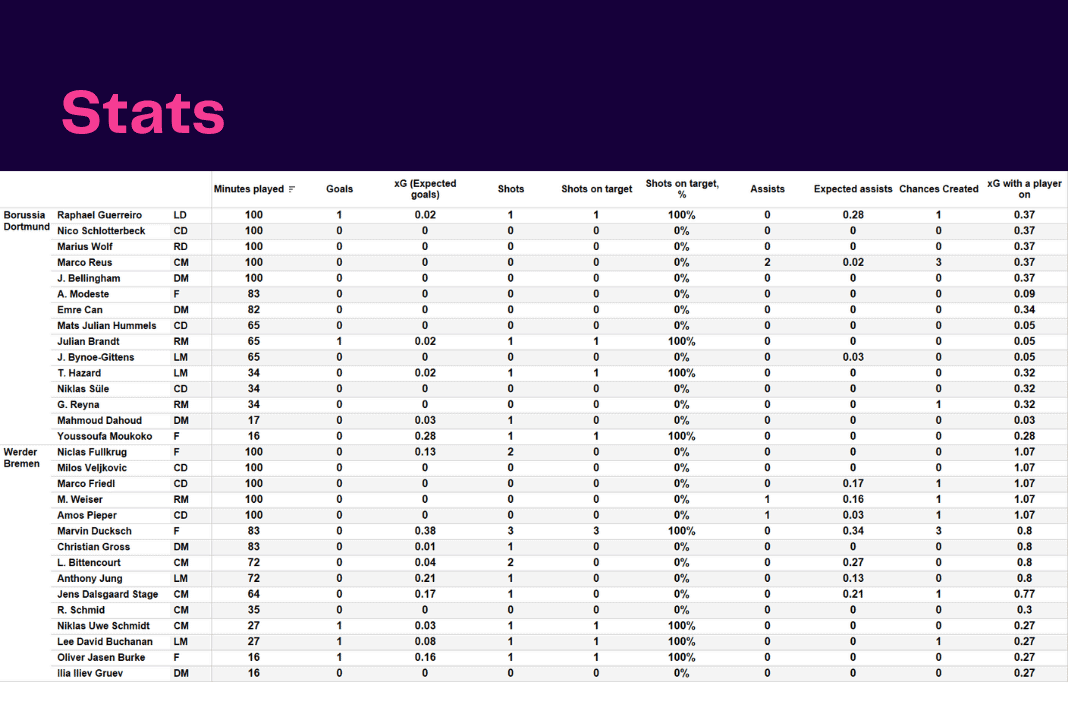 Bundesliga 2022/23: Borussia Dortmund vs Werder Bremen – data viz, stats and insights