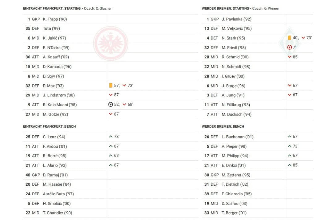 Saturday saw Frankfurt vs Werder in the Bundesliga.