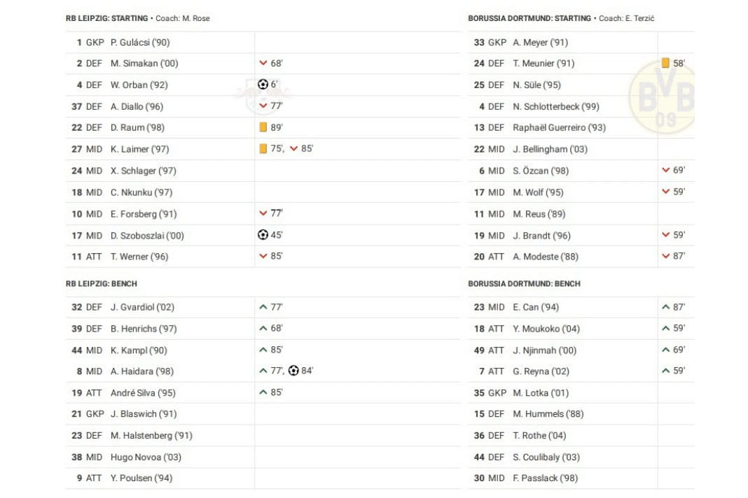 Saturday night saw RB Leipzig vs Borussia Dortmund in the Bundesliga.