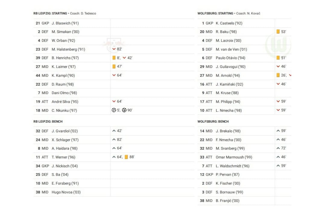 Saturday night saw RB Leipzig vs Wolfsburg in the Bundesliga.