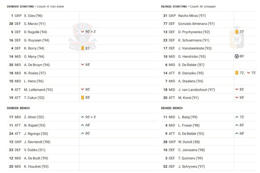 Sunday saw Dender vs Deinze in Challenger Pro League.
