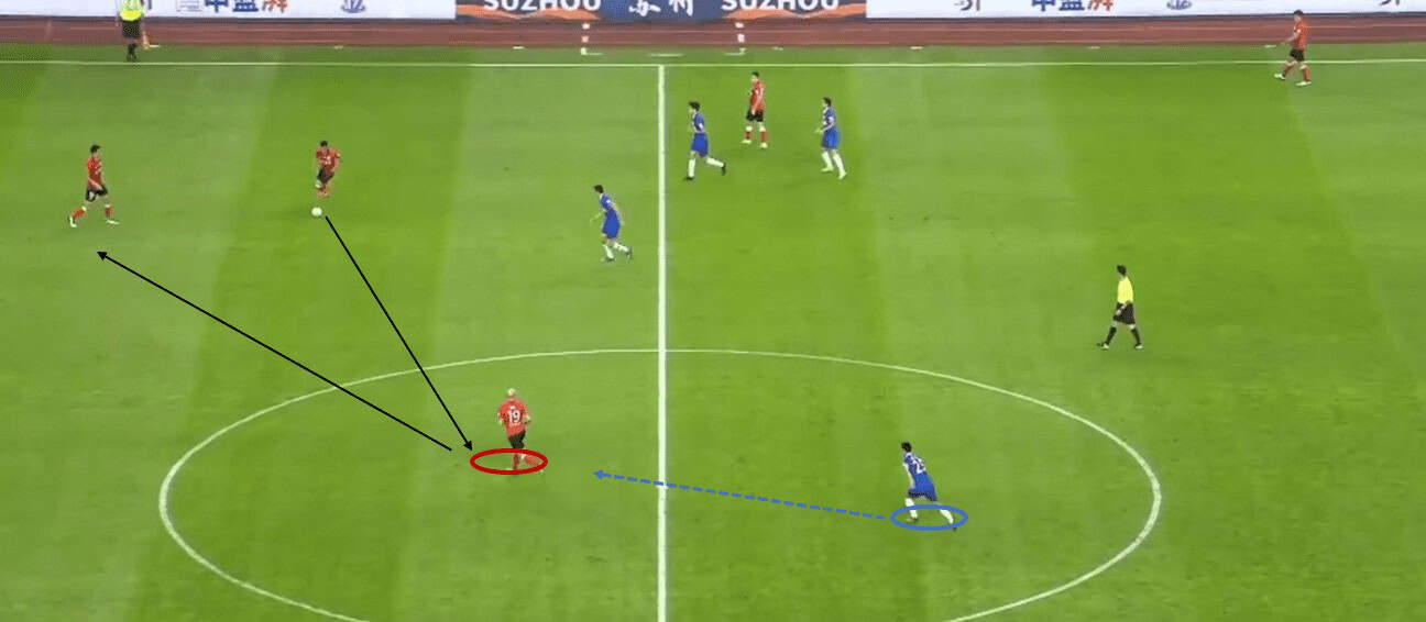 On top of this, some simple rotations could also create a positional advantage as it would confuse the defenders on whom to mark. Shenhua’s players could also lose concentration under man-marking tactics.