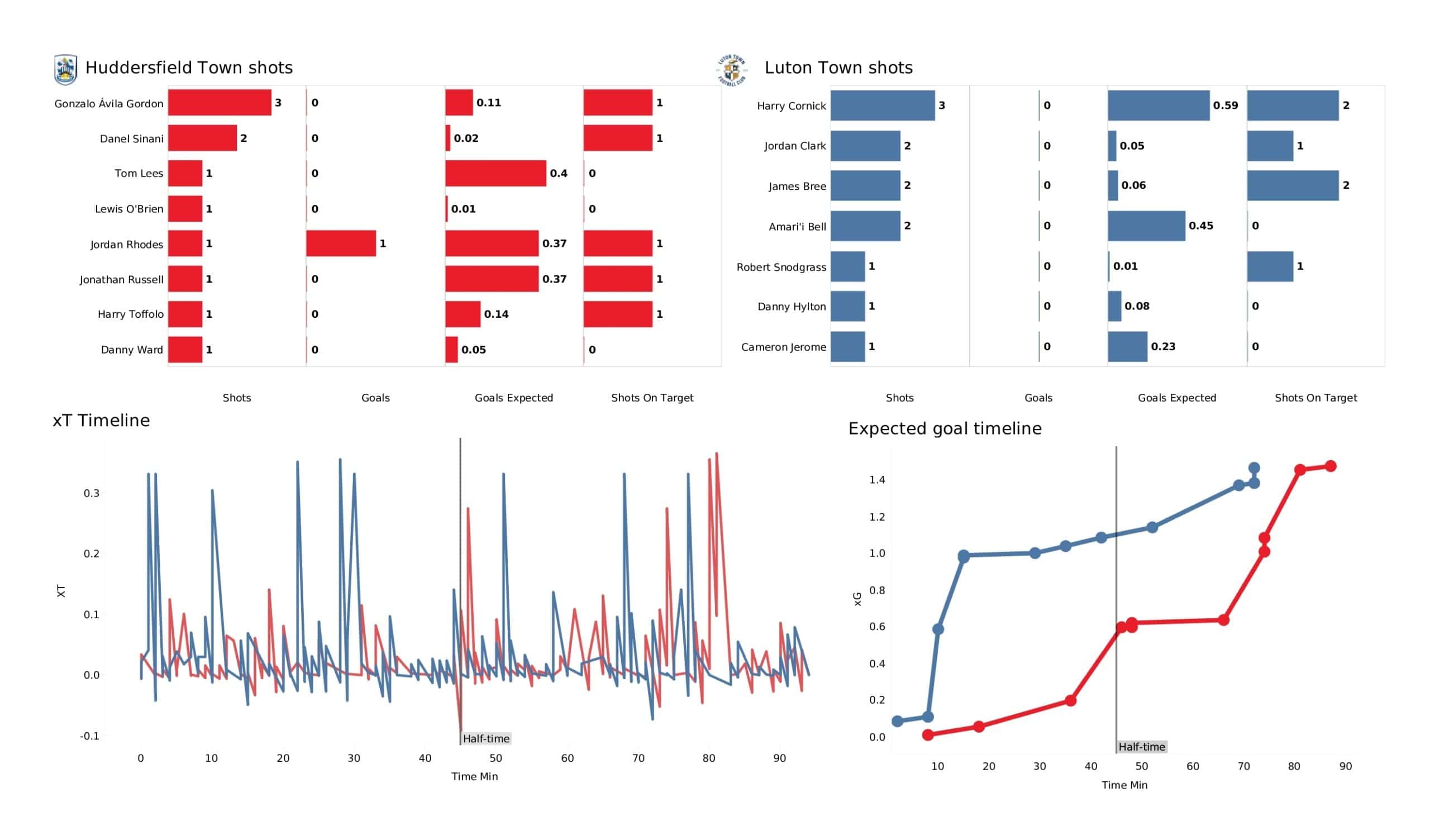 EFL Championship 2021/22: Huddersfield Town vs Luton Town – data viz, stats and insights