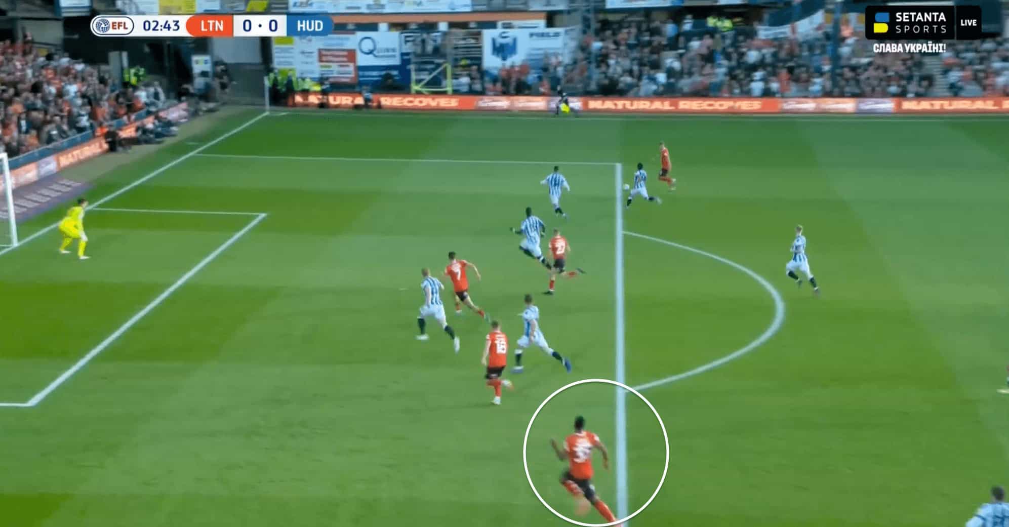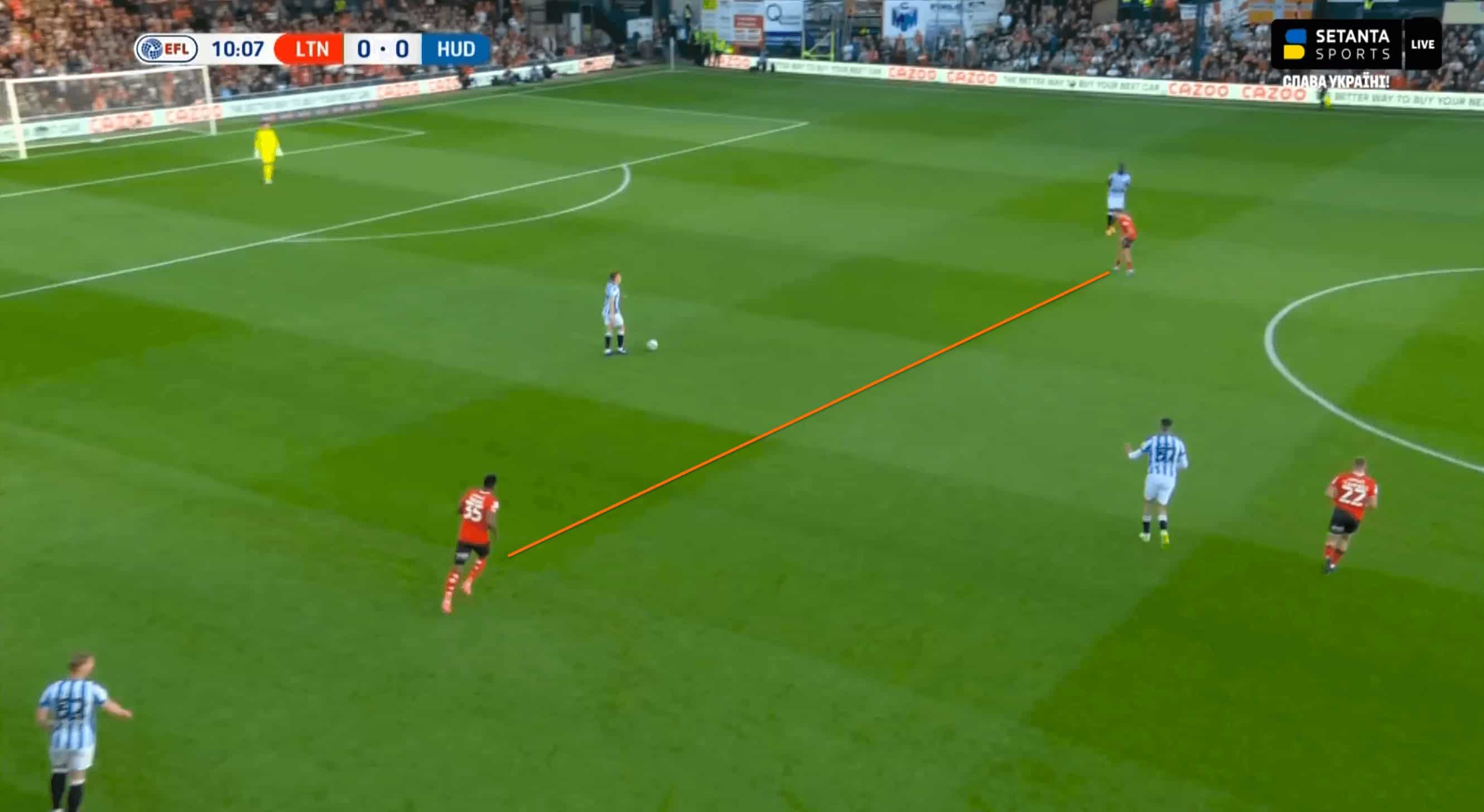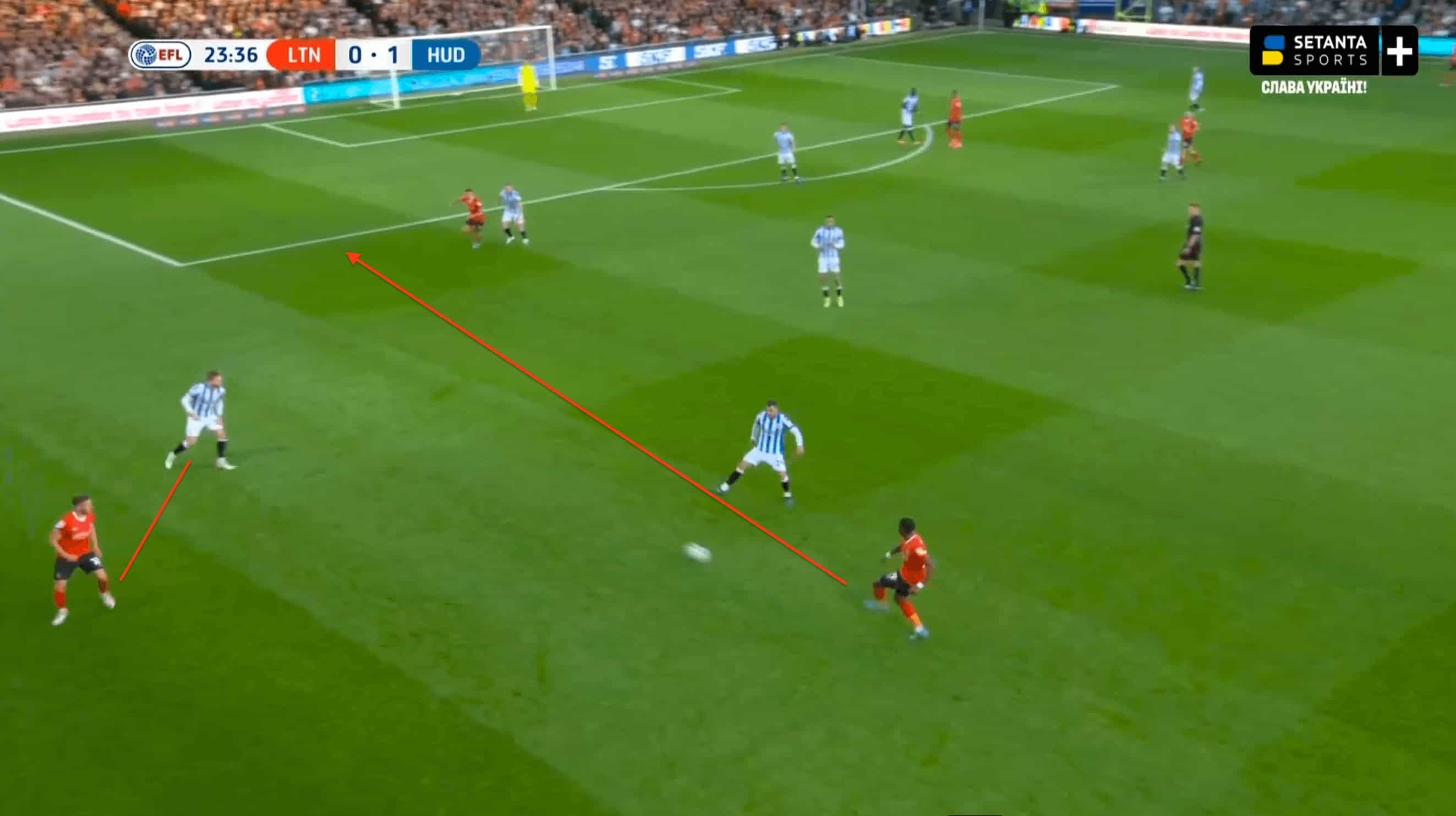 The high line that Huddersfield deployed was exactly the thing Luton were looking to exploit and they tried in different ways where one of them was constantly looking to make a run in behind and receive a long pass from one of their teammates.