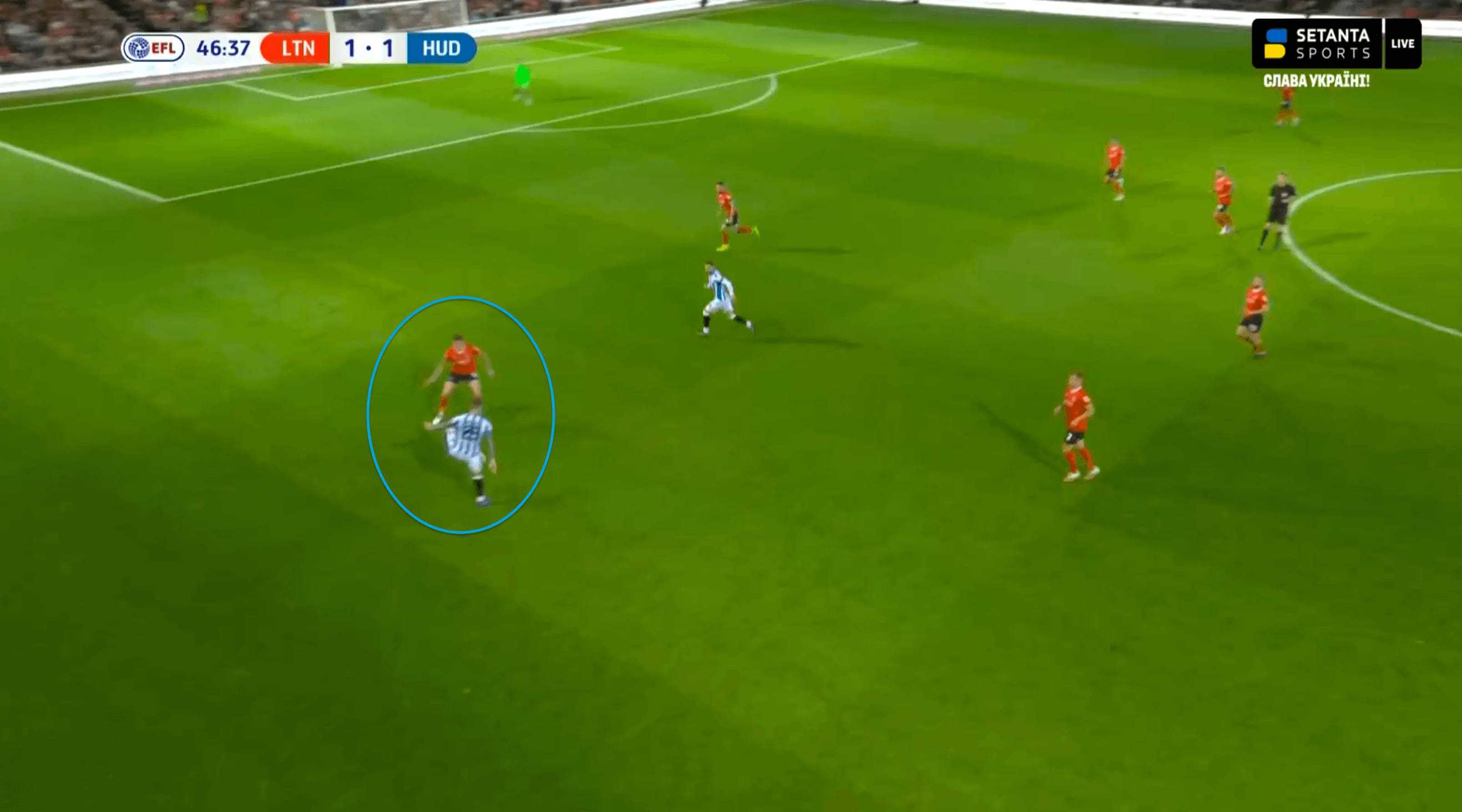 But Luton are among the best pressing sides in the league this season and at times they were able to catch Huddersfield with their intense press and force a turnover. Slowly, Huddersfield changed their approach and resorted to long balls to progress the ball forward.