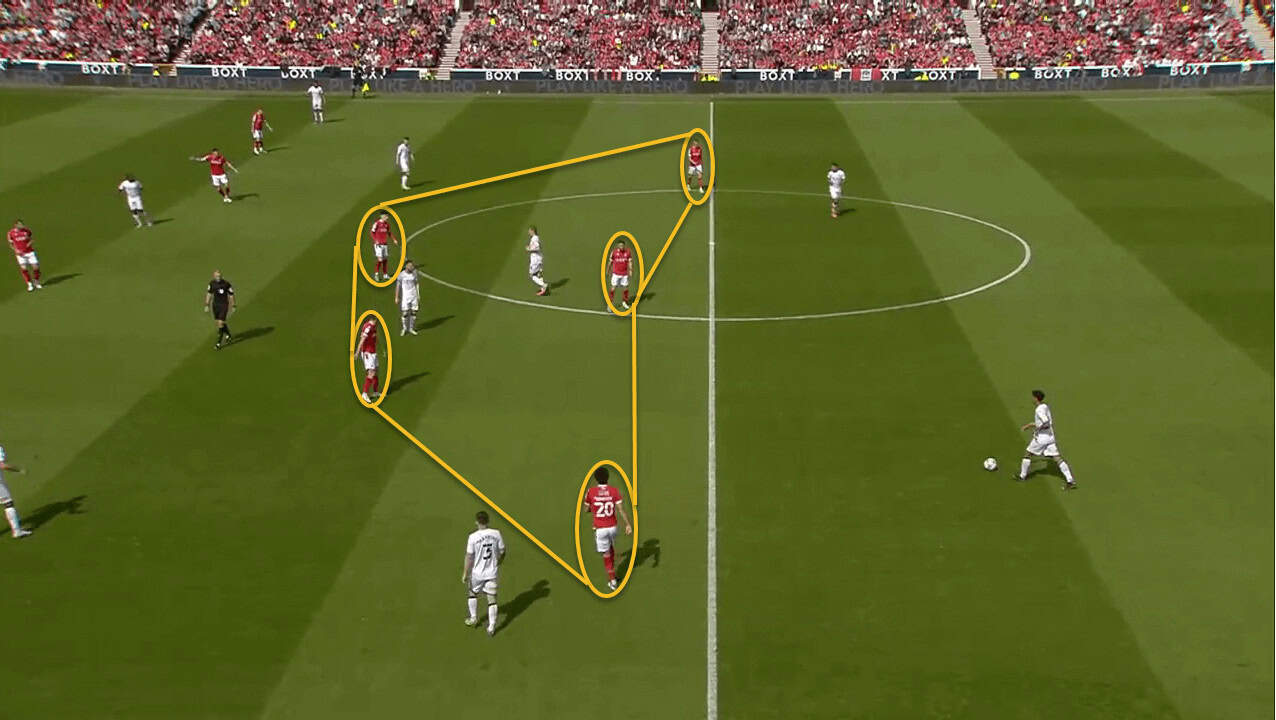 Right from the start of the match, Nottingham Forest was able to implement a solid defensive structure through each third of the pitch.