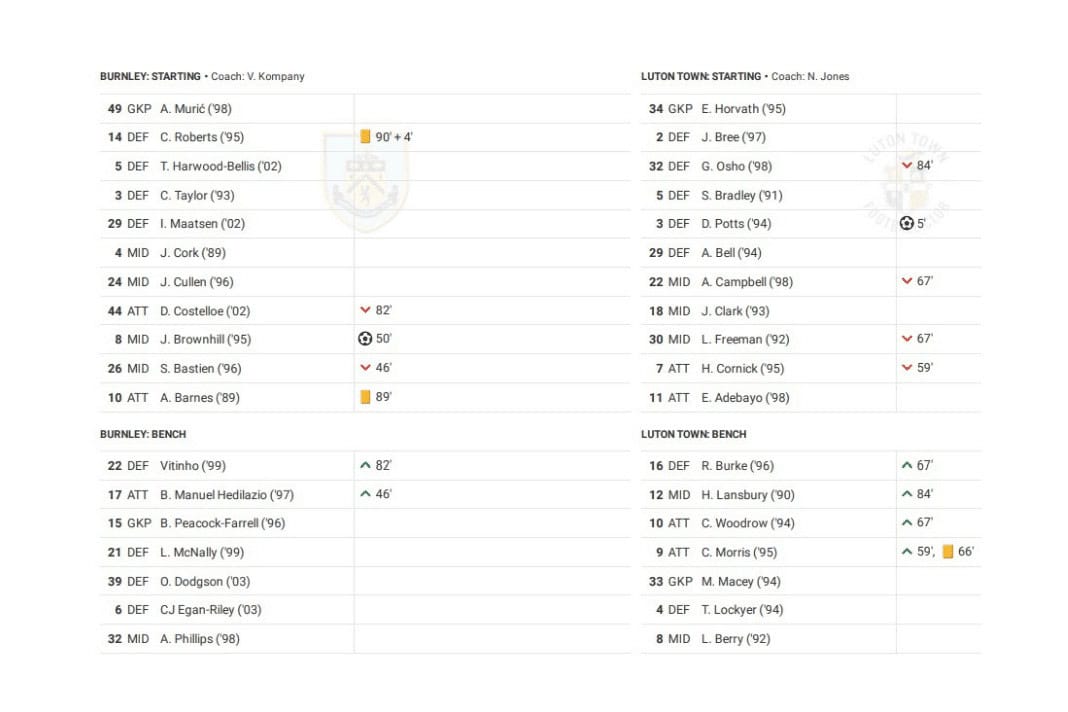Saturday lunchtime saw Burnley play Luton in the EFL Championship.