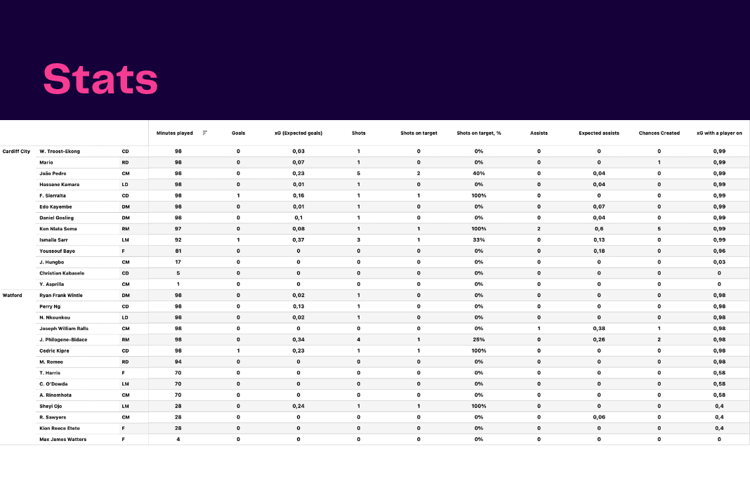EFL Championship 2022/23: Cardiff vs Watford – data viz, stats and insights