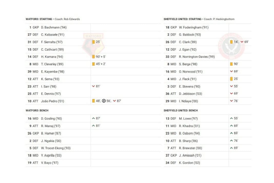 Monday night saw Watford play Sheffield United in the EFL Championship.
