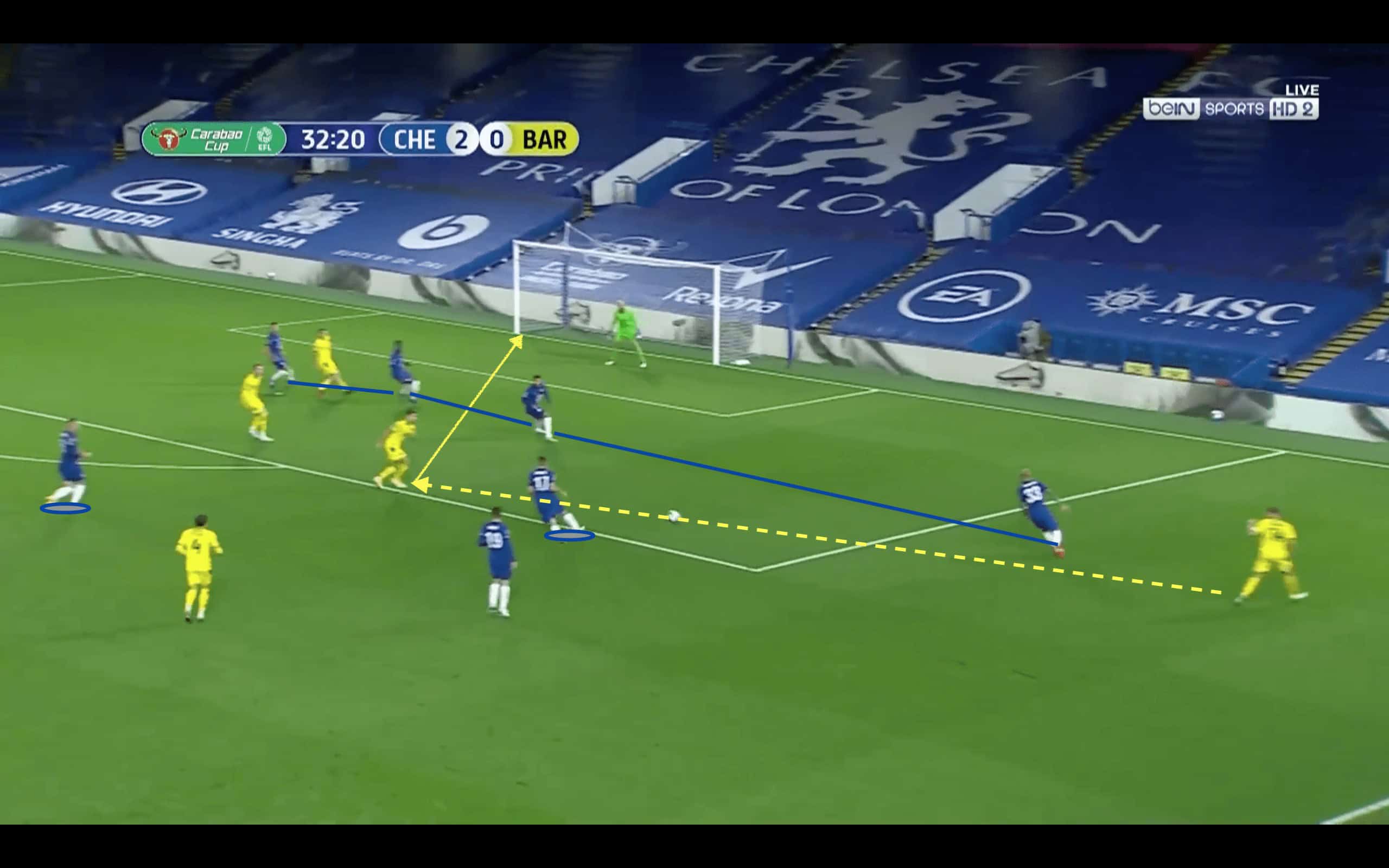 Although they had good chances to score, an area they could have targeted was the cut-back. Lampard opted for a double pivot of Kovačić and Barkley, which is quite an attacking double-pivot. It proved to be a success as Barkley added good offensive value to the side from deep but he was a liability when it came to defending – an exploitable area.