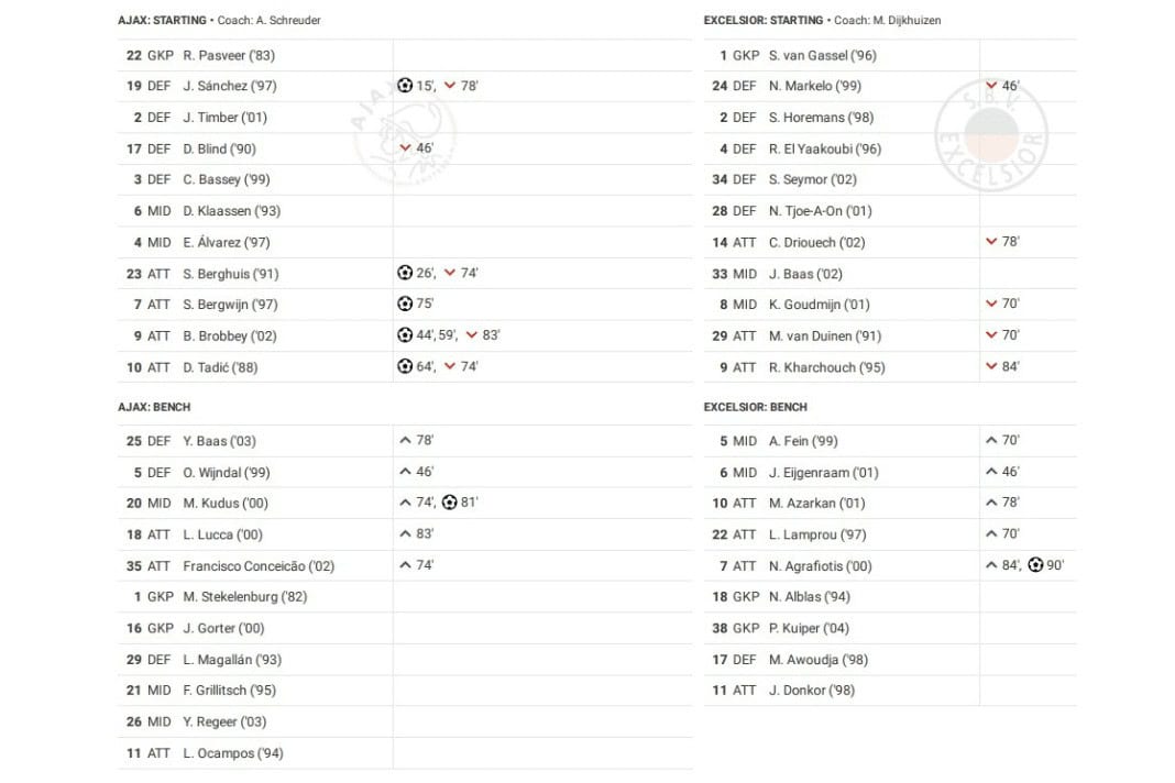 Sunday saw Ajax vs Excelsior in the Eredivisie.