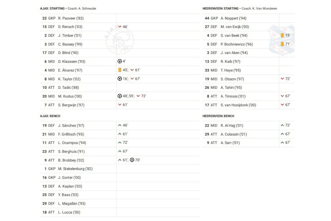 Saturday saw Ajax vs Heerenveen in the Eredivisie.
