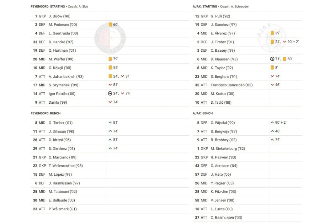 Sunday saw Feyenoord vs Ajax play Ajax in the Eredivisie.