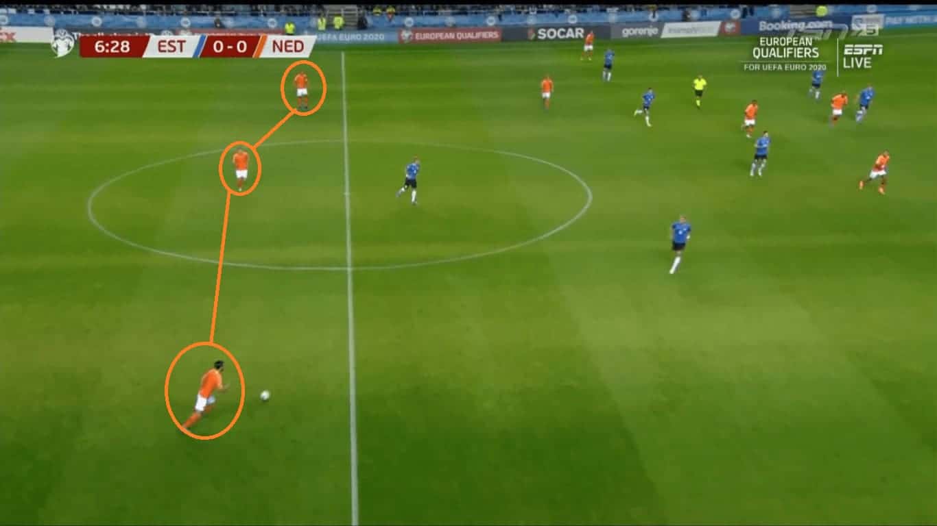 The attacking trio played by the Dutch caused Estonia problems due to its constant rotation and movement. Depay and Babel have developed strong chemistry with each other over the past year and this was seen as the former and latter would constantly swap positions. Babel seems equally comfortable playing centrally as Depay and this was evident when Depay would move to the left-wing and Babel would automatically, yet discretely, take his place as the striker. Malen had a comparatively quiet game but possesses the flair and technical ability to become an important outlet on the wings for the Dutch. Overall, Koeman has built a very fluid attack with Depay as its focal point and his consistent team-selection is paying off as the Netherlands play with good cohesion and understanding.