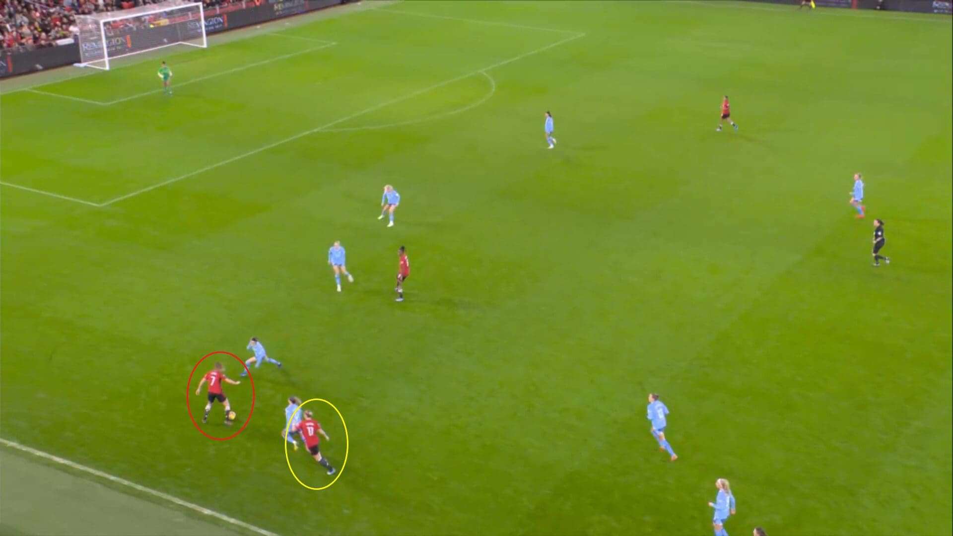 Going back to Manchester United’s tactics, the other thing that is worth noting is how they did make a personnel change at the break, with the ineffective Nikita Parris coming off after not really showing a true reflection of her recent good form in the first half and Riviere coming on to replace her.