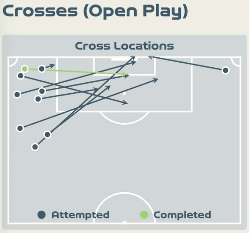 This continued in the second half, and as we can see above, most of Denmark’s crosses occurred from their left wing, with only one from the opposite side. The Danish game plan significantly revolved around utilising the space Bronze leaves behind her when she attacks. This is very much a weak point for England. Likely, other teams will also seek to do this. Especially if the left back pushes higher, this exposes the centre backs and makes it much easier for the opponent to counterattack.