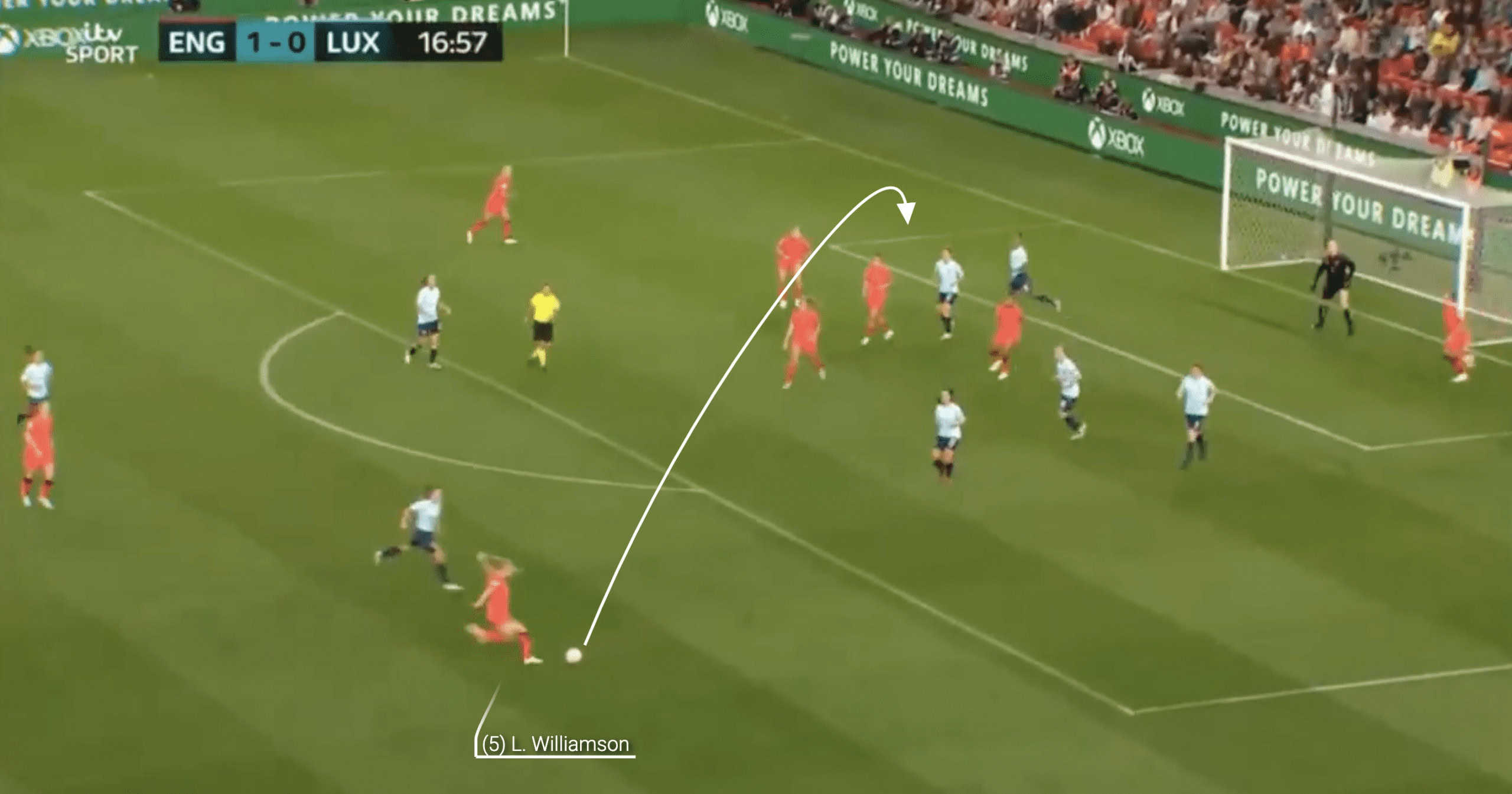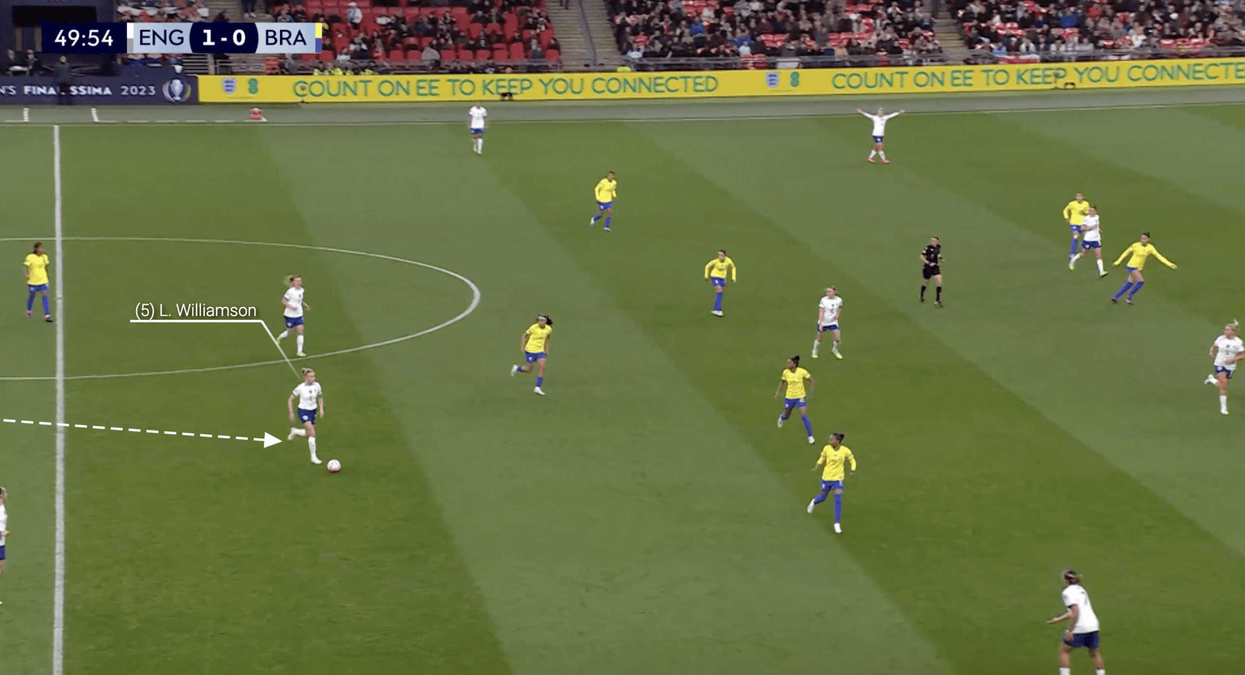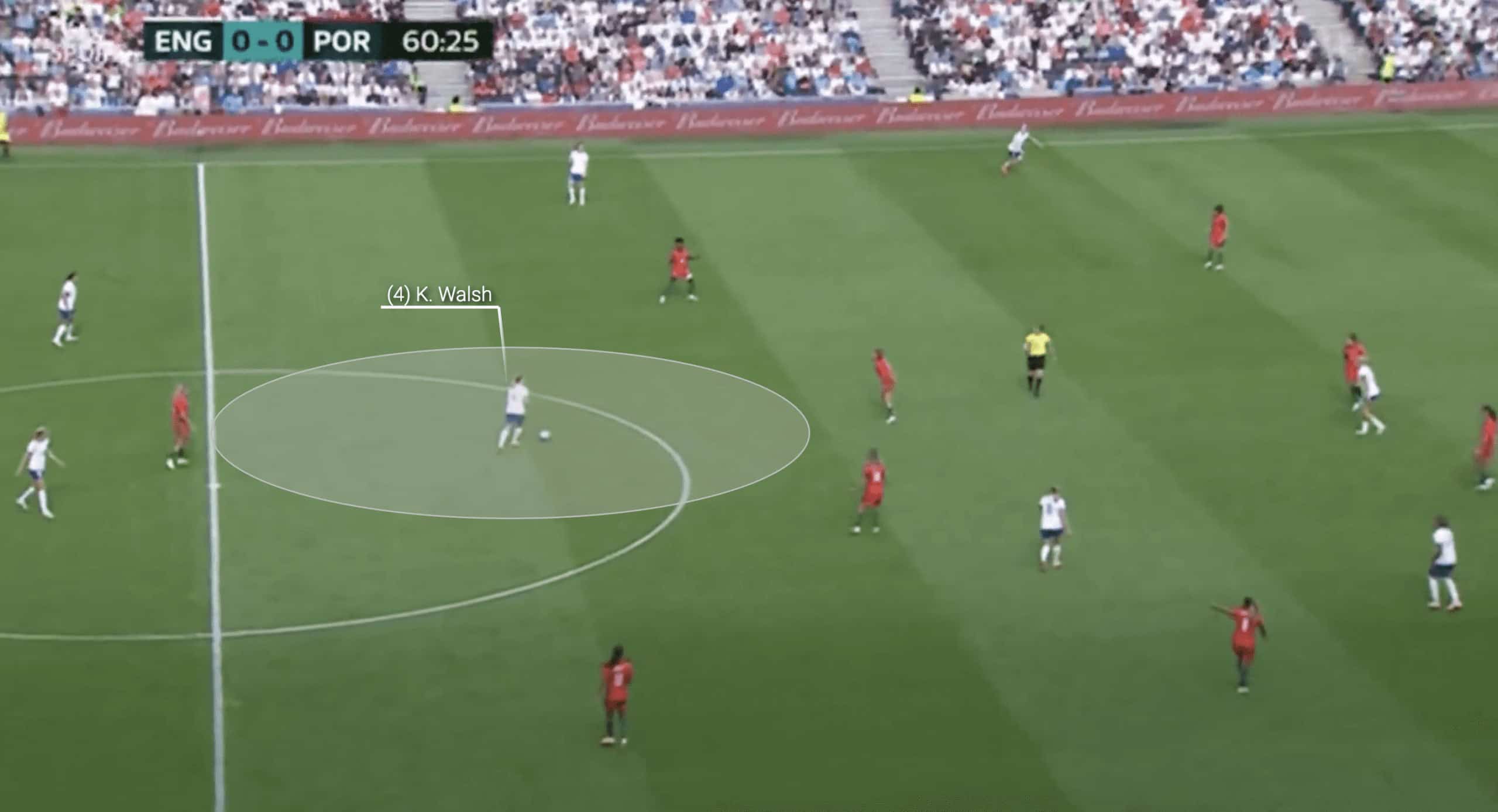 In the pre-World Cup friendly against Portugal, we can see that Walsh had a lot of time and space to play some of her trademark long-range passes to progress the England attack.