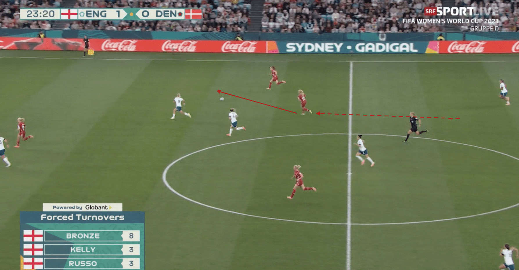 In the scenario above, Denmark intercepted an England pass and immediately launched the counterattack.