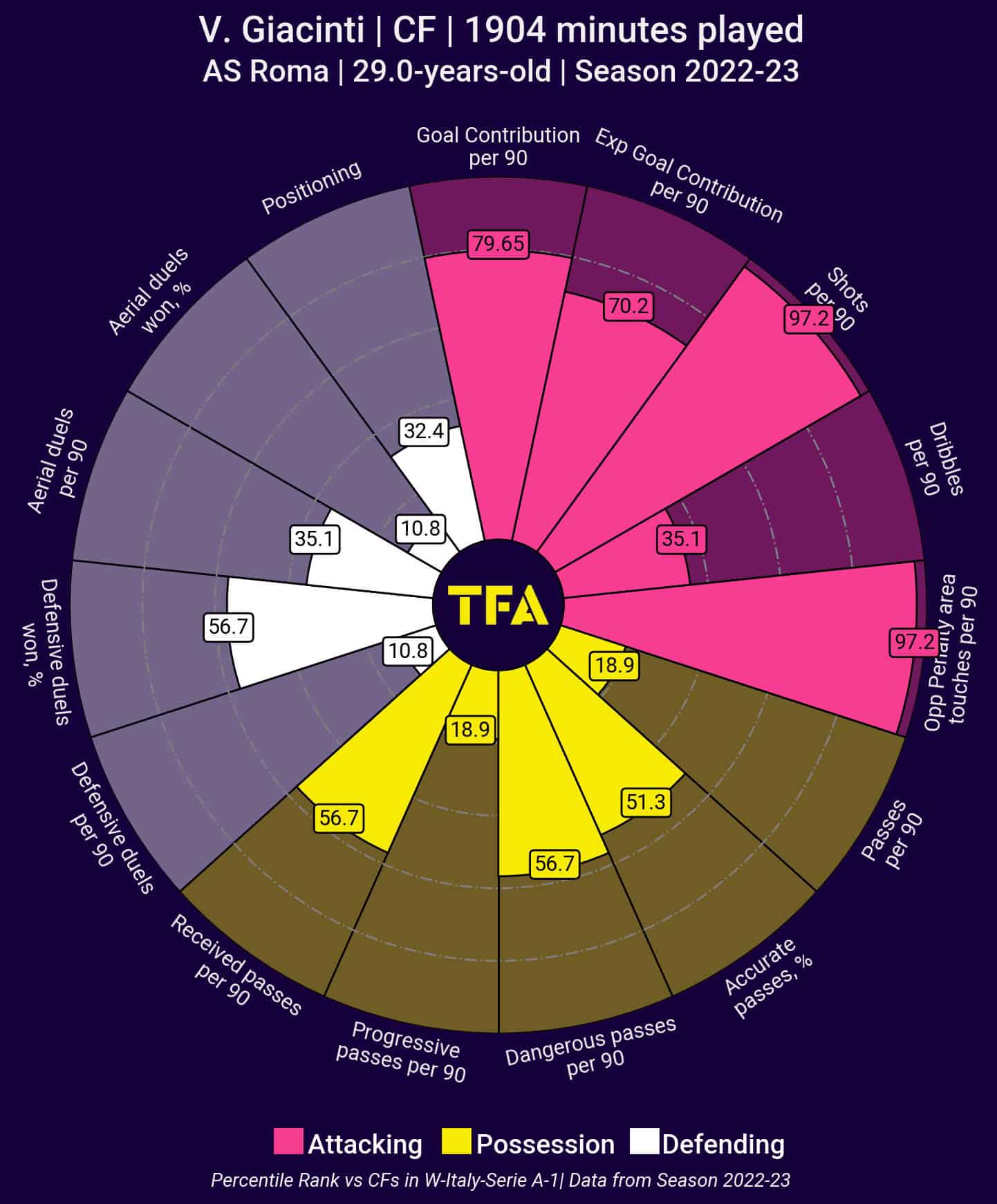 Giacinti is a player who excels in movements and in shooting on goal