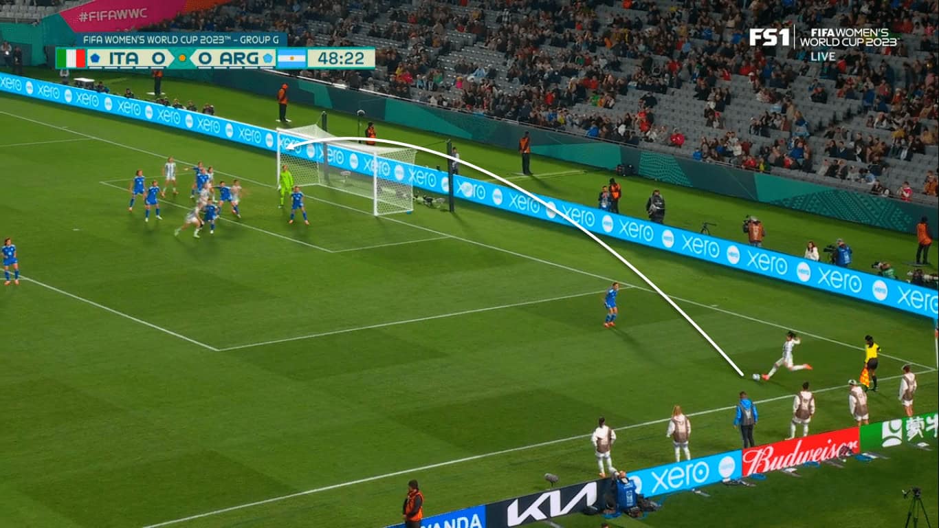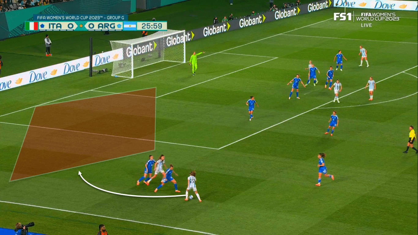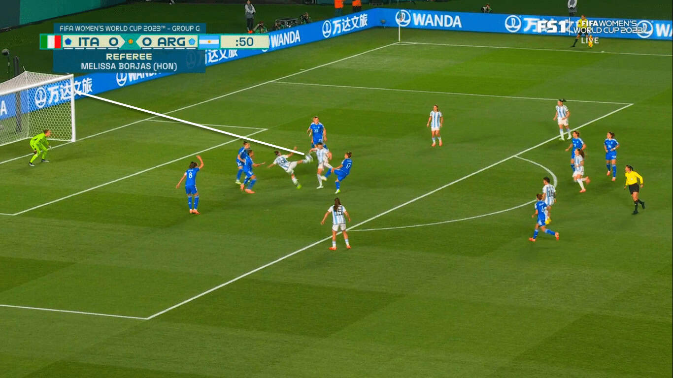 That’s precisely why Giacinti was extremely dangerous when receiving key passes from Dragoni and succeeding in expertly finishing some of these chances despite being offside. Improving her movements’ timing and paying more attention to offside would help Giacinti and Italy a lot since the striker usually makes intelligent movements and has got good chemistry with midfielders.