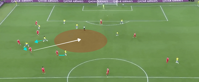 Serbia tried to cause trouble early in the Brazil progress. They used man-oriented approach during the pressing phase. They protected the centre with tight man marking then when the ball moved to the wing they shifted towards the wings.