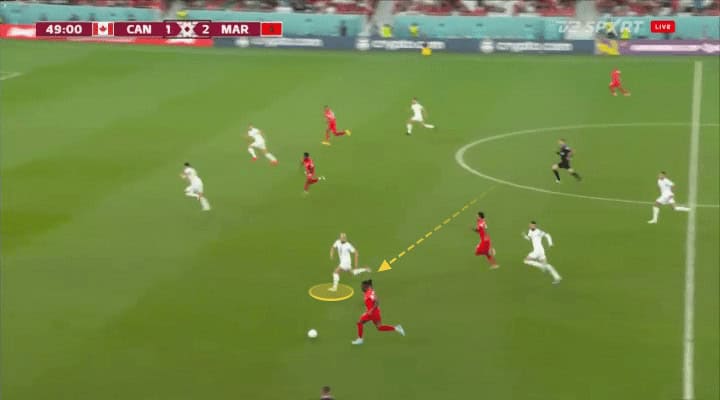 Faced with the technical gestures and brushstrokes that the Moroccan players were leaving, their direct football that was played at first patiently, then in a matter of seconds evolved into quick one-touch plays and ended in dribbles, and luxurious details from Sofiane Boufal or Hakim Ziyech, or long balls by their midfielders or centre-backs, Canada seemed nullified on the pitch, which it was for many minutes of the game, something unexpected after their recent performances at the World Cup.