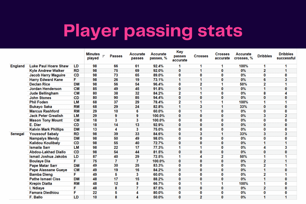 in Data Analysis, England, FIFA World Cup 2022, Match Analysis, Senegal, Stats Pack