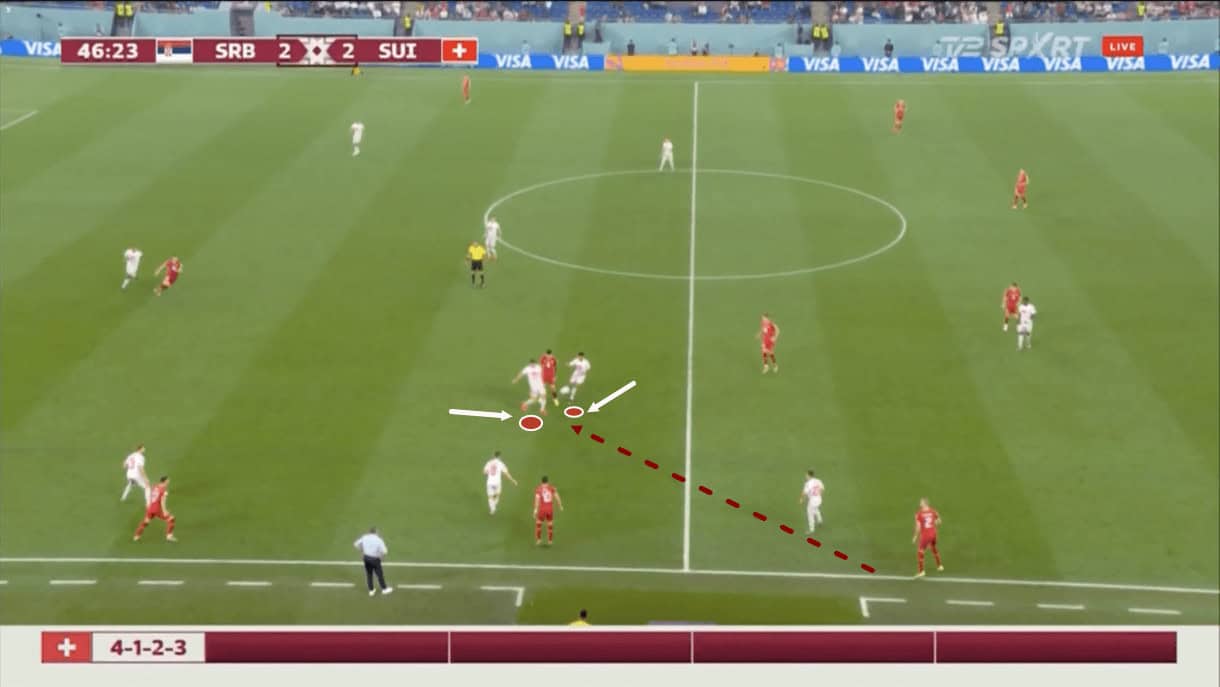 Overall, we’d say Switzerland ultimately did a good enough job at defending against these attacks, and Serbia’s movement to drag the Swiss midfield around to create clearer openings for the dropping attacker could’ve been better. Take nothing away from the Swiss defence that made plenty of interceptions in this area to prevent the desired progression, however.