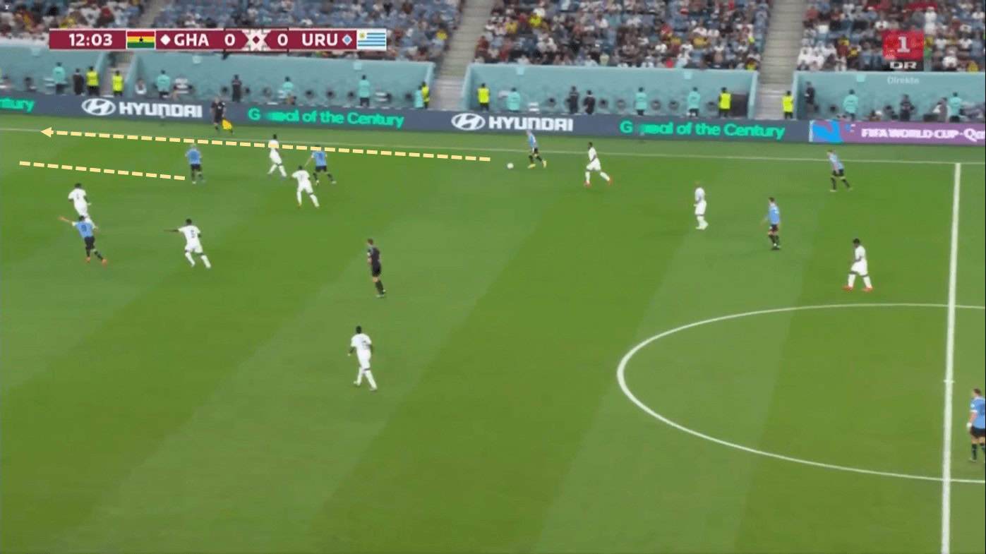 The South Americans overloaded quite well on one side, added to the defensive passivity of Ghana who did not enter the match in the most focused manner and performed at the high level they had shown in their first two matches. Fede Valverde or Rodrigo Bentancur were important in their approaches to taking the ball, playing first-time passes and combining with their full-backs or wingers, but also to turn their vision around and find the player on the other side of the field.