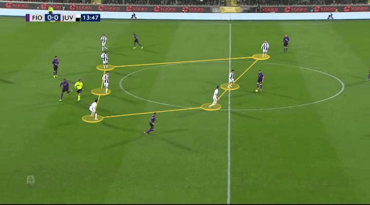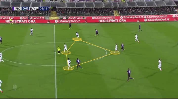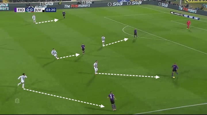 As you see in the below image, Fiorentina really went after Juve’s players. The front six went really high when pressing to disrupt Juve’s build-up play from the back.