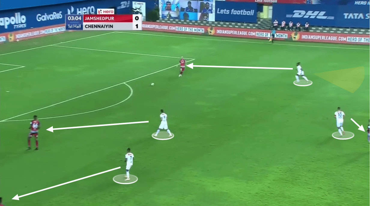 Jamshedpur’s press in the final third and Chennaiyin’s build-up
