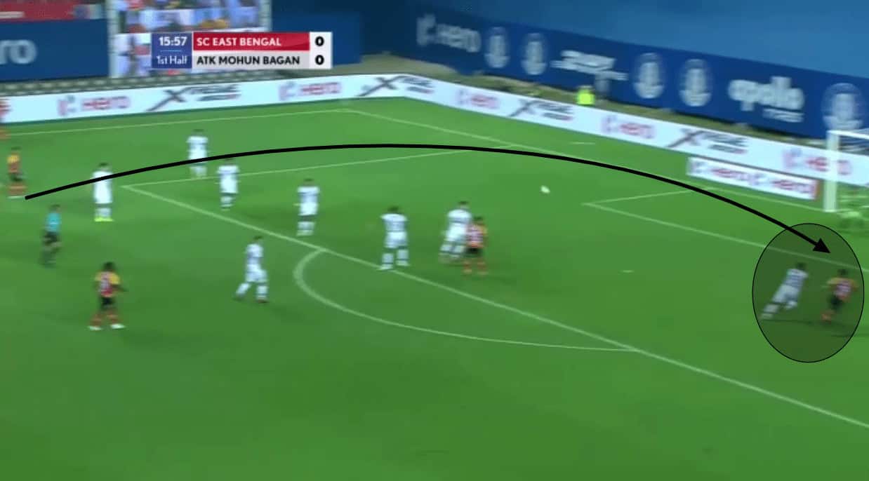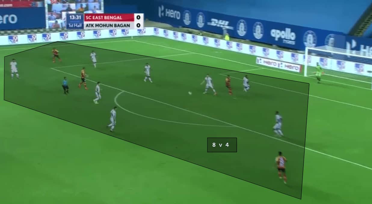 The only way East Bengal could have exploited ATKMB was their separation between Jhingan and the left wing-back, as also was seen in the first image in this section.
