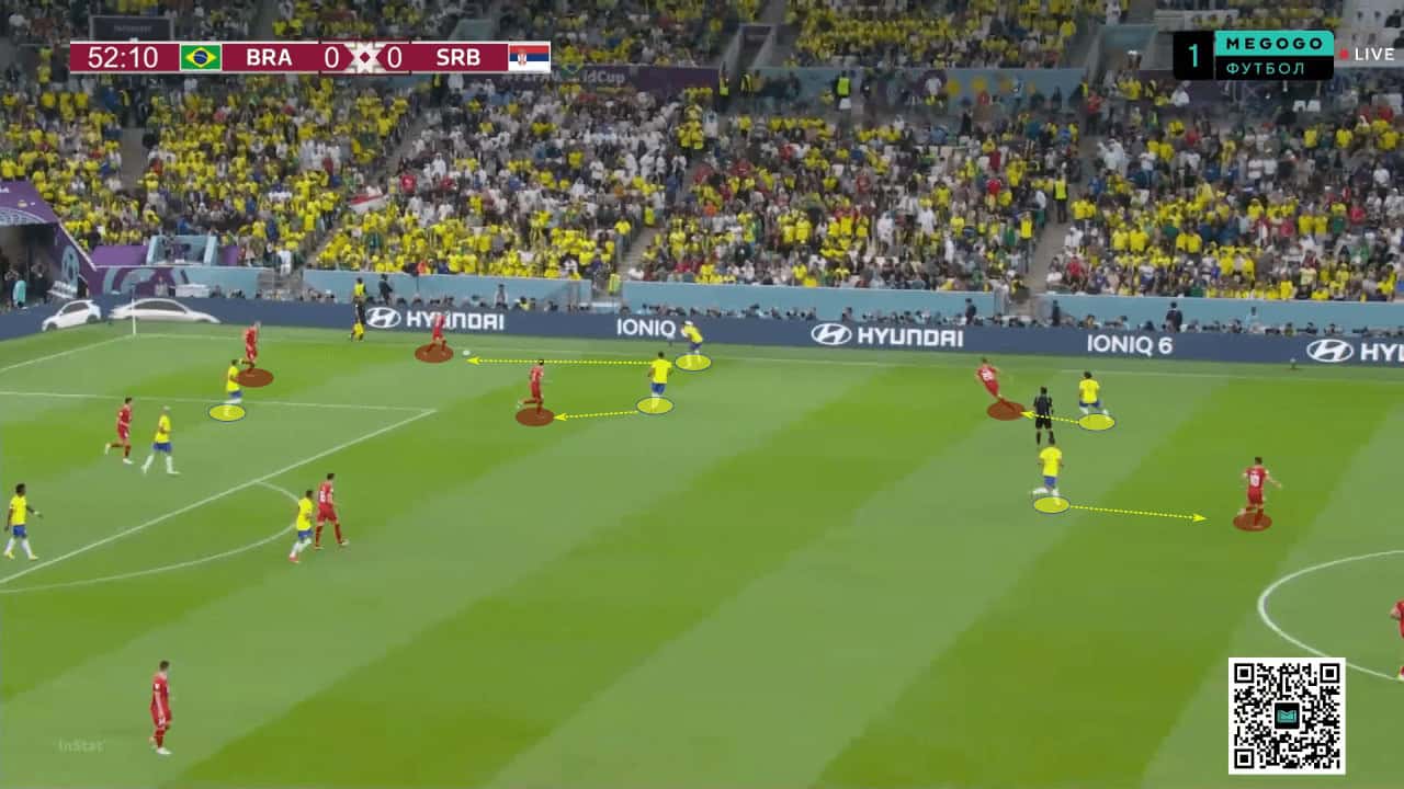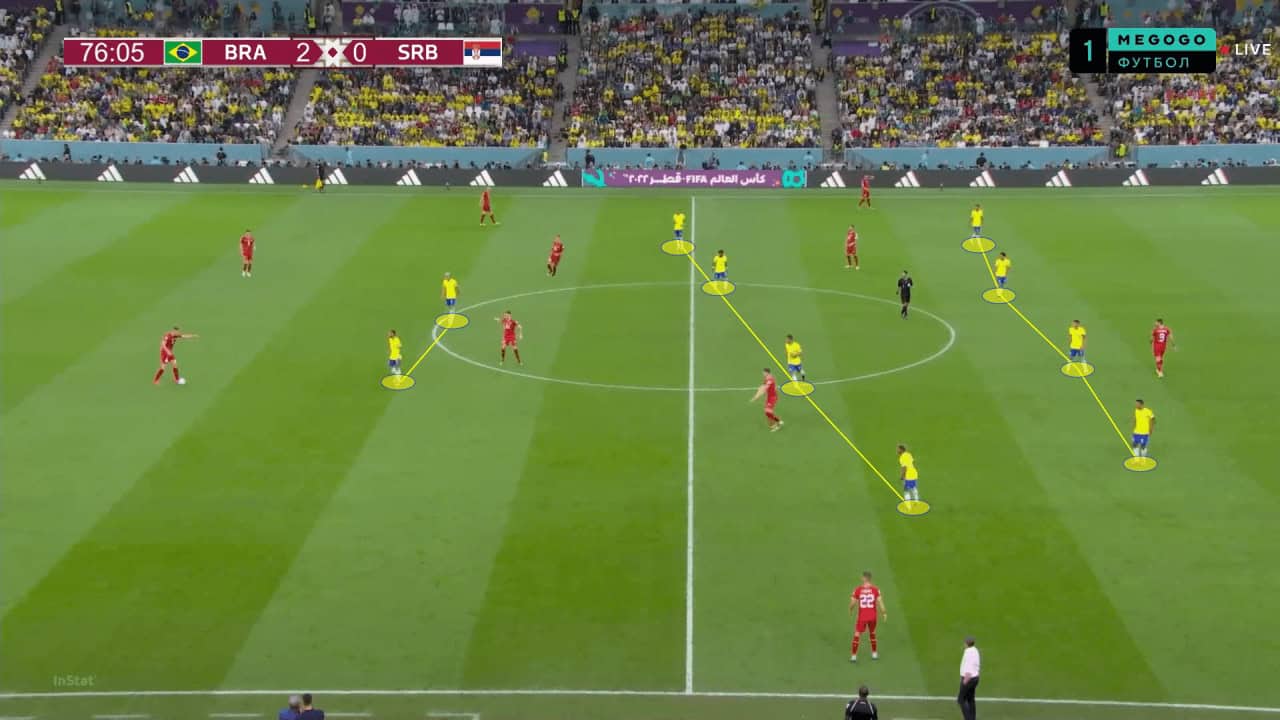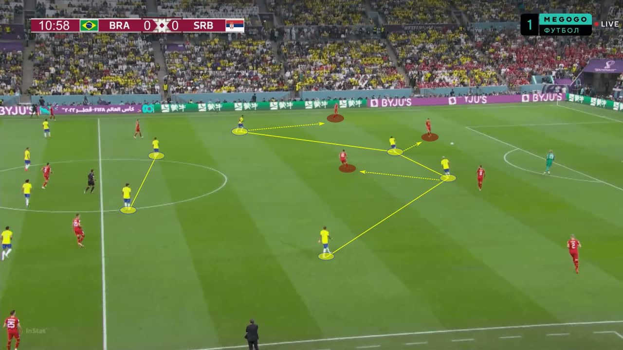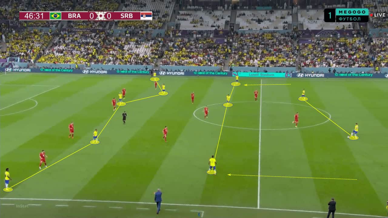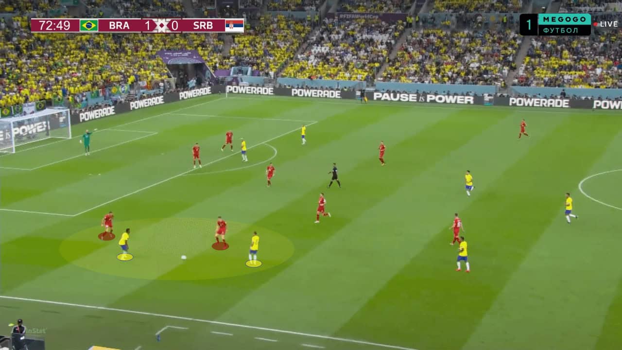 Stojković’s defensive strategy resulted in a frustrating first half for Brazil, with the South Americans struggling to create any real opportunities. It not only kept them from reaching the final third effectively, but it also limited the control they had over their possession and the overall game. However, as the match went on, Brazil began to find answers.
