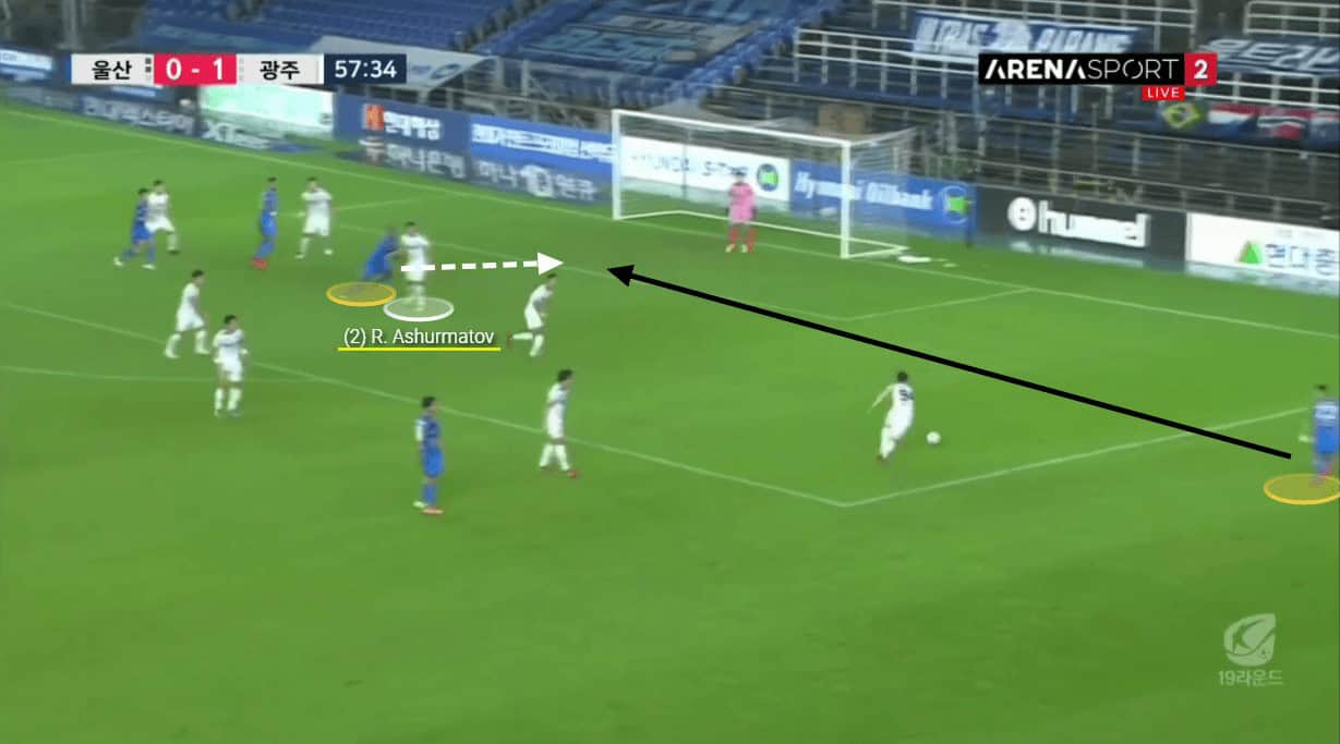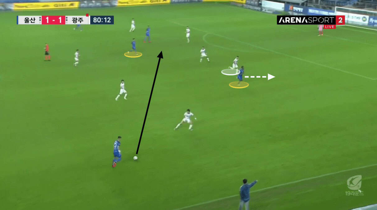 To counter Gwangju’s low block, often the centre-backs would carry the ball almost to the final third.