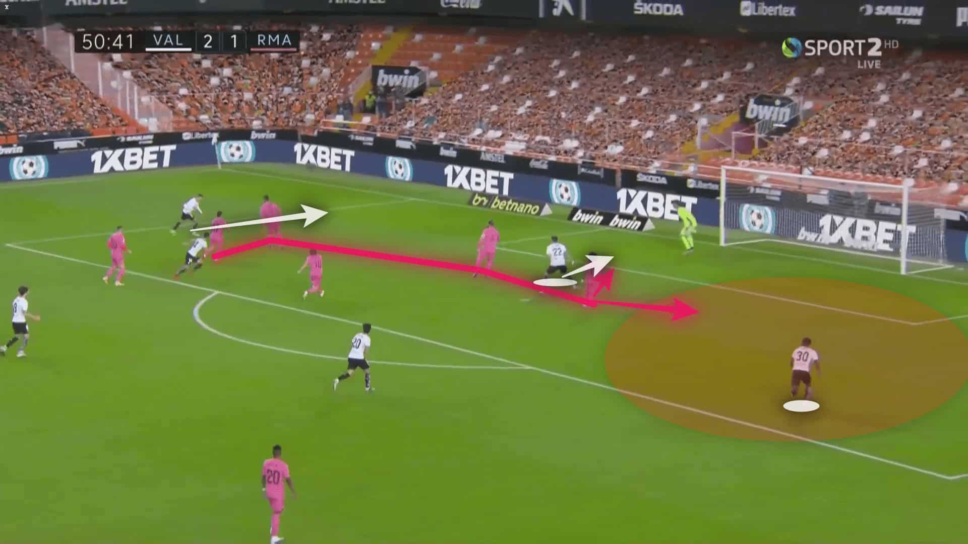 Through this analysis, we can see how the absence of Casemiro was a major factor in the breakdown of the Real Madrid defence. Doing so with Vázquez on the right of defence and then selecting Marcelo ahead of the more reliable Mendy was simply self-sabotage. Without attacking players who would put in the defensive work required, Valencia found it easy to outnumber and isolate Real Madrid defenders. This led to a more stretched Real Madrid defence which invited errors, such as three penalties and an own goal.