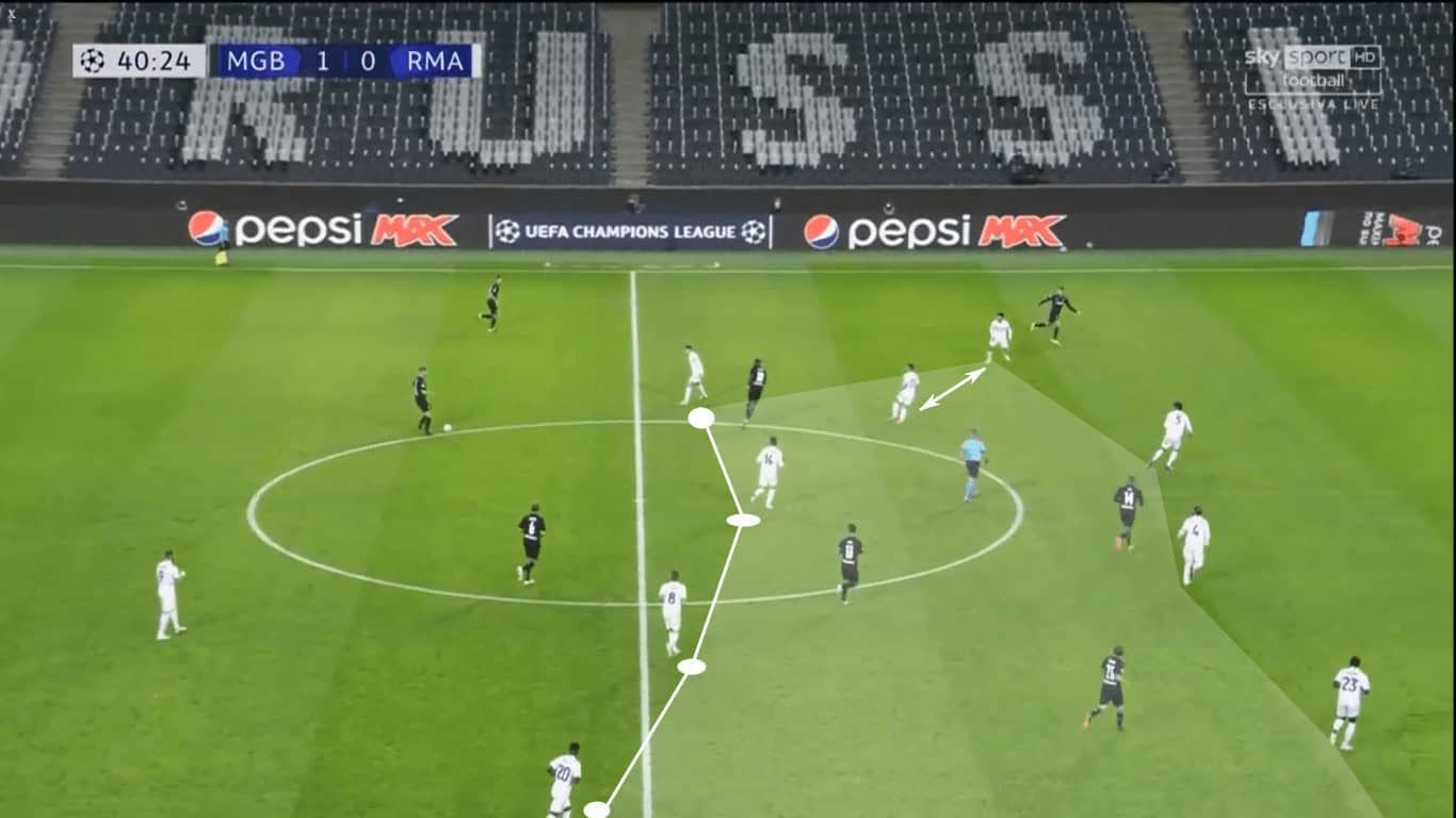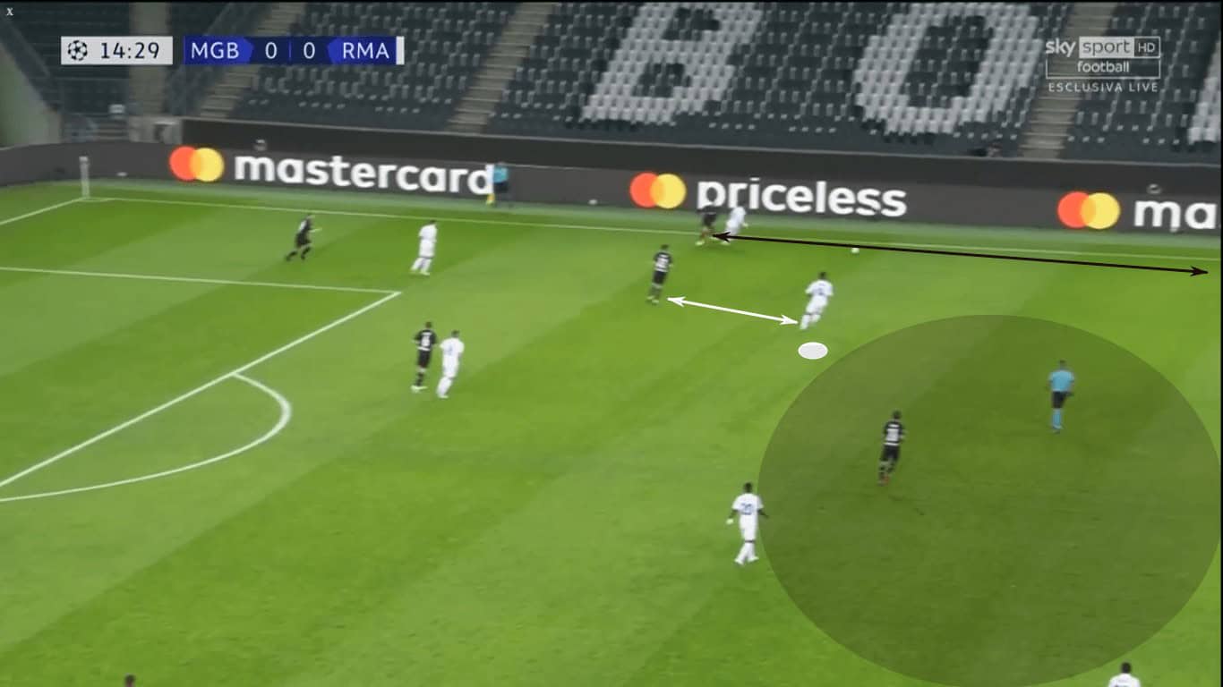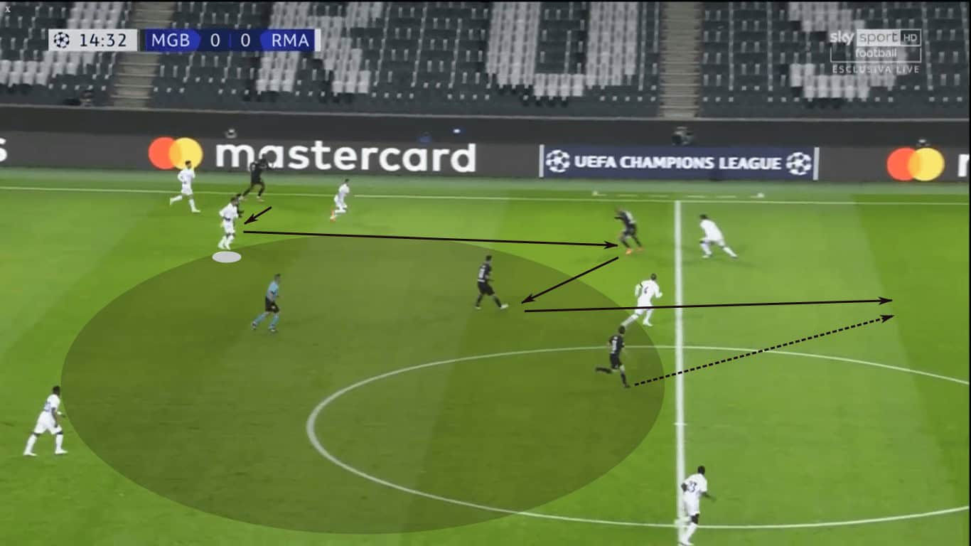 As Mönchengladbach play into the high target, a quick sequence of passes sees them get behind the Real Madrid backline.
