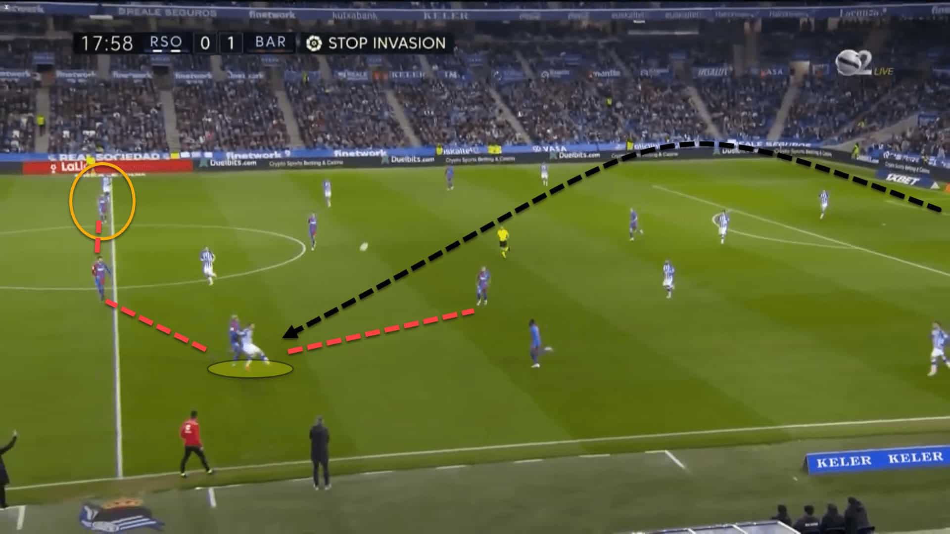 This caused Real Sociedad to attack mainly through the flanks. Of their 39 total positional attacks throughout the game, 31 were in the wide areas.