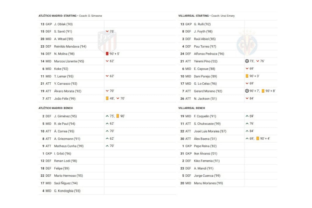Sunday night saw Atletico Madrid vs Villarreal in La Liga.
