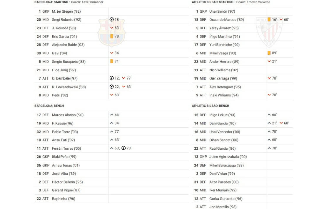 Sunday night saw Barcelona vs Bilbao in La Liga.