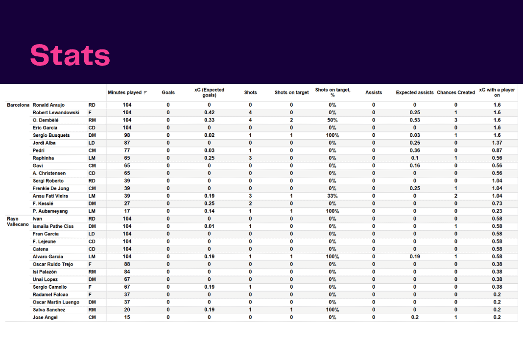 La Liga 2022/23: Barcelona vs Rayo Vallecano – data viz, stats and insights