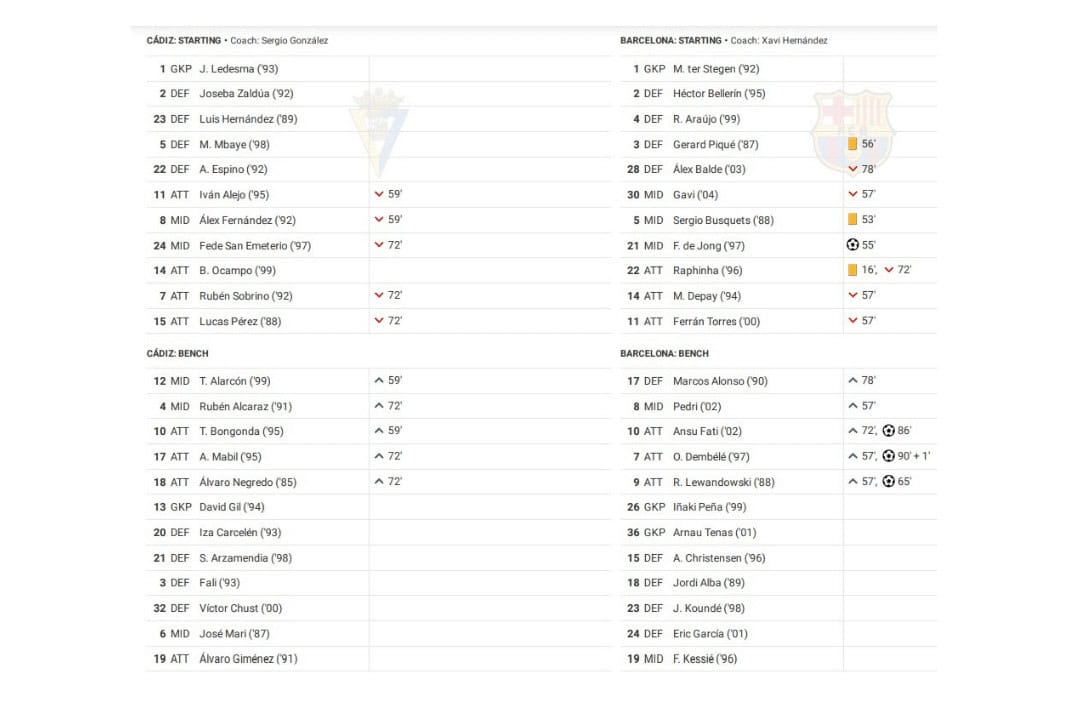 Saturday night saw Cadiz vs Barcelona in La Liga.