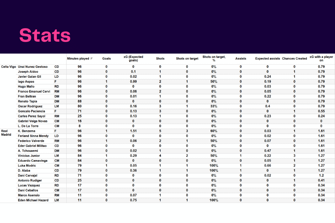 La Liga 2022/23: Celta vs Real Madrid – data viz, stats and insights