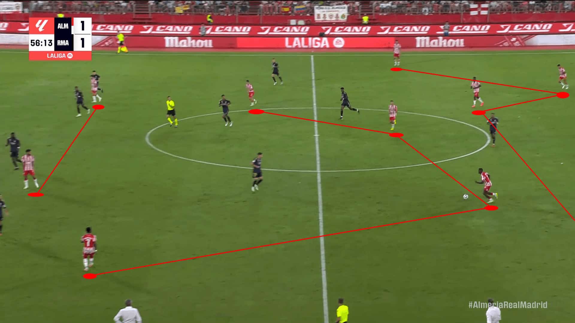 We’ll look at specific patterns in Almería’s attack, how Carlo Ancelotti has designed his diamond midfield and take a deep dive into Real Madrid’s final third play without a true #9.